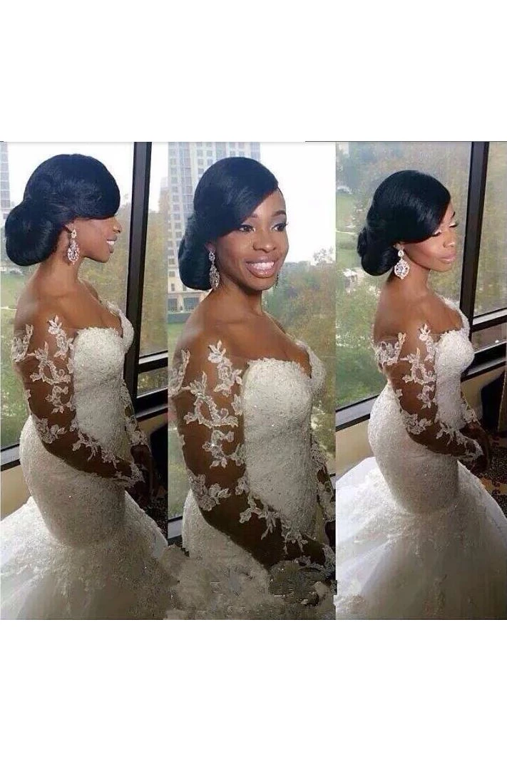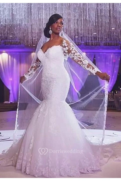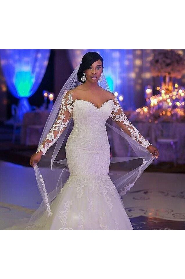 Glamorous Off-the-shoulder Long Sleeve Mermaid Wedding Dress With Appliques