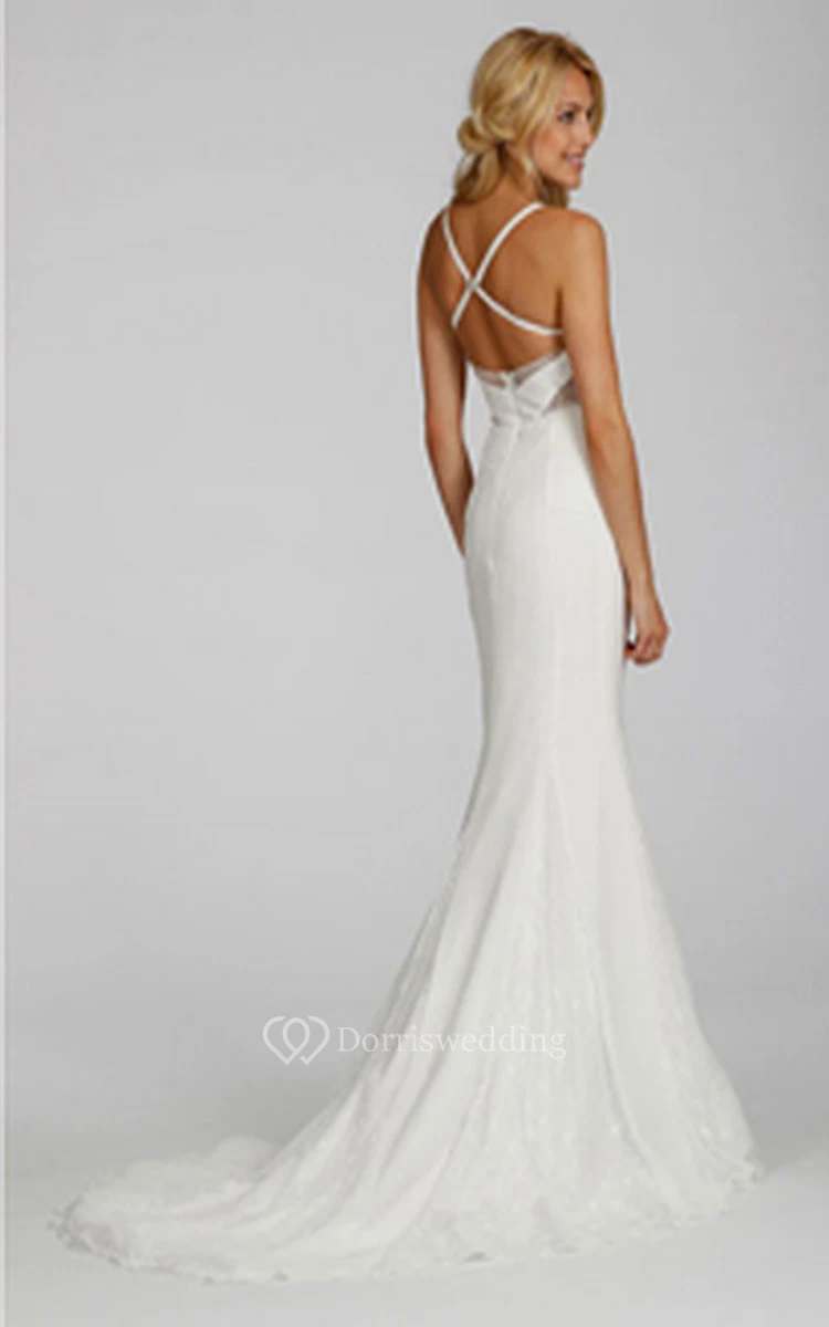 Glamorous Pleated Bodice Long Lace Dress With Crisscross Back