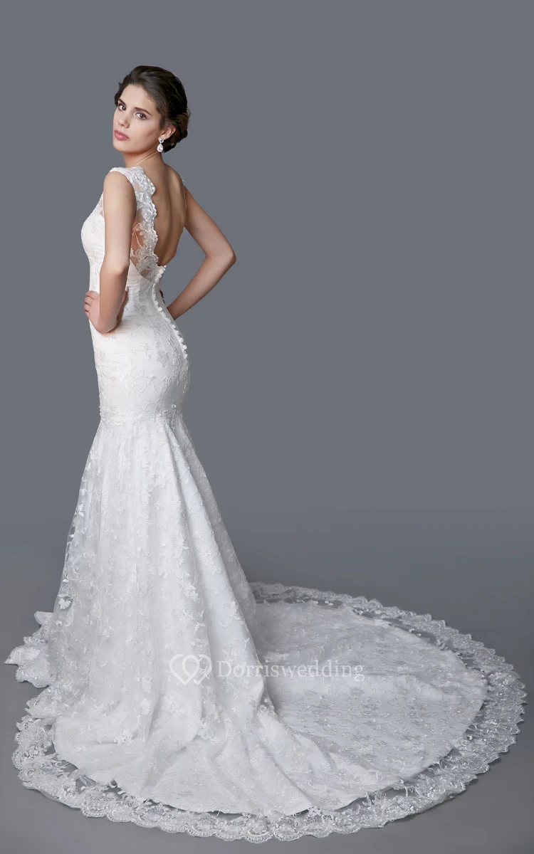 Glamorous Scoop Neckline Lace Mermaid Dress With Deep V-Back