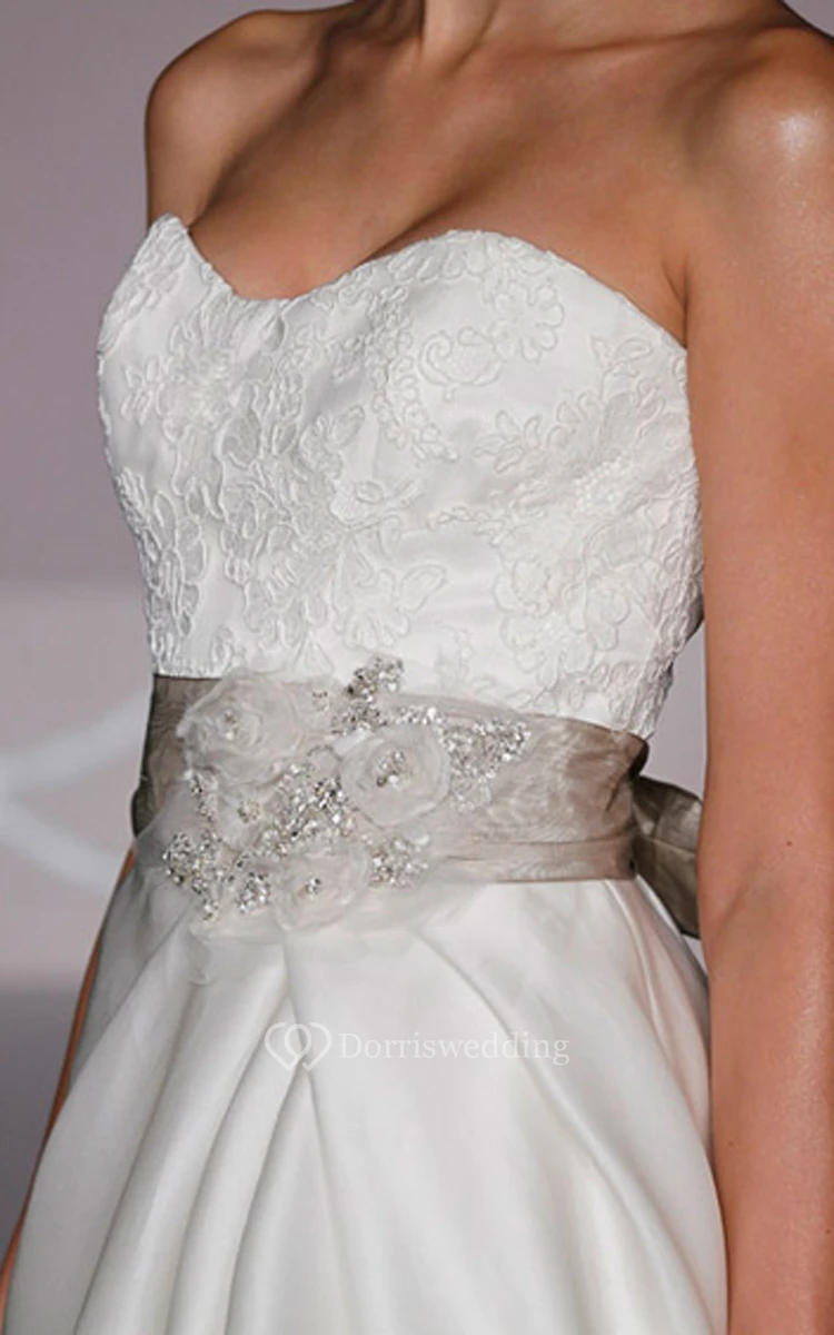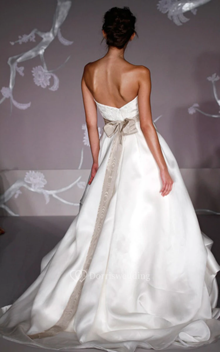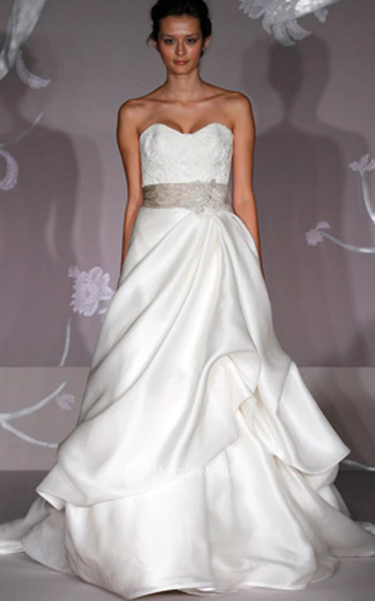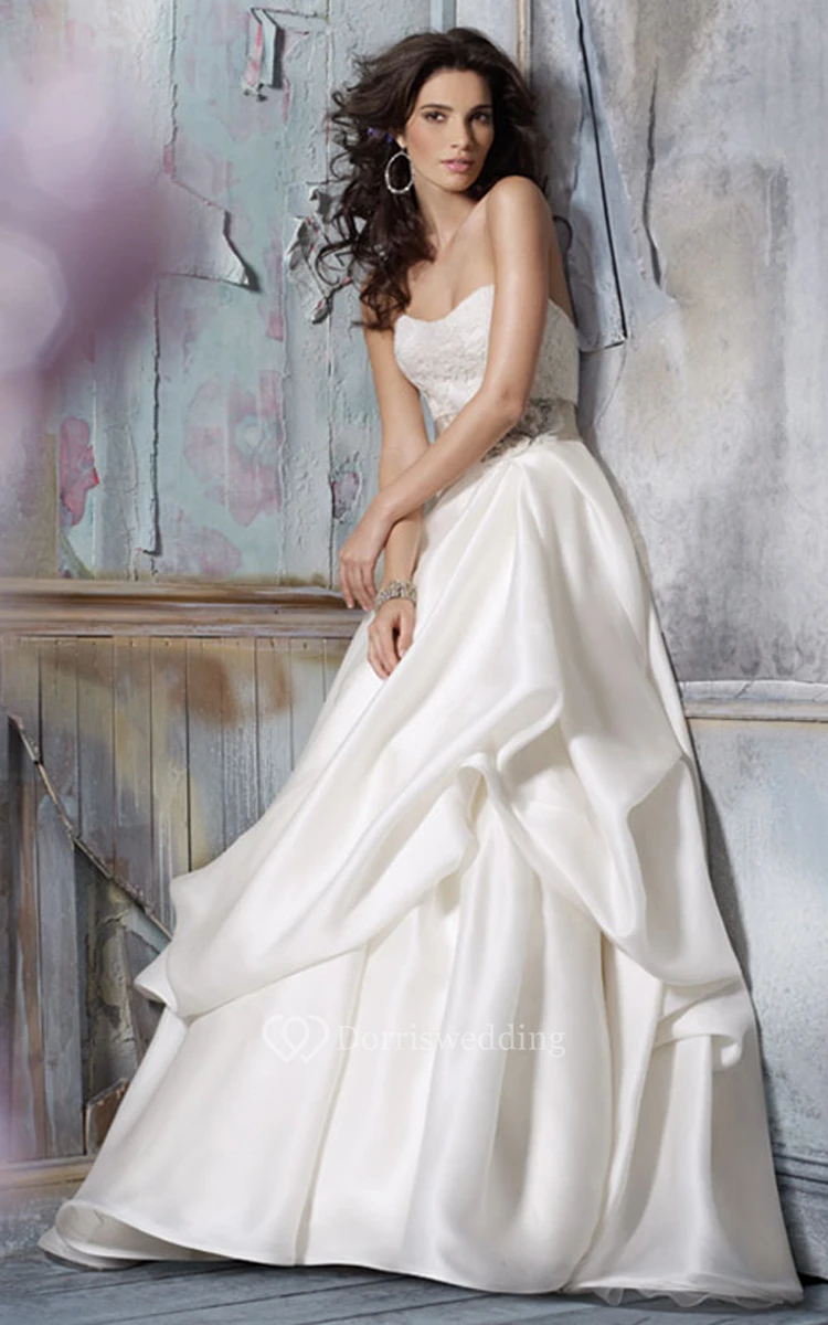 Glamorous Strapless Lace Bodice Satin Organza Pick-up Ball Gown