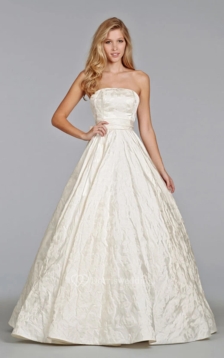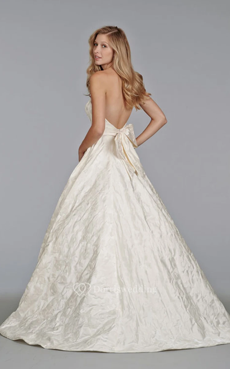 Glamorous Strapless Satin Ball Gown With Bow at Back