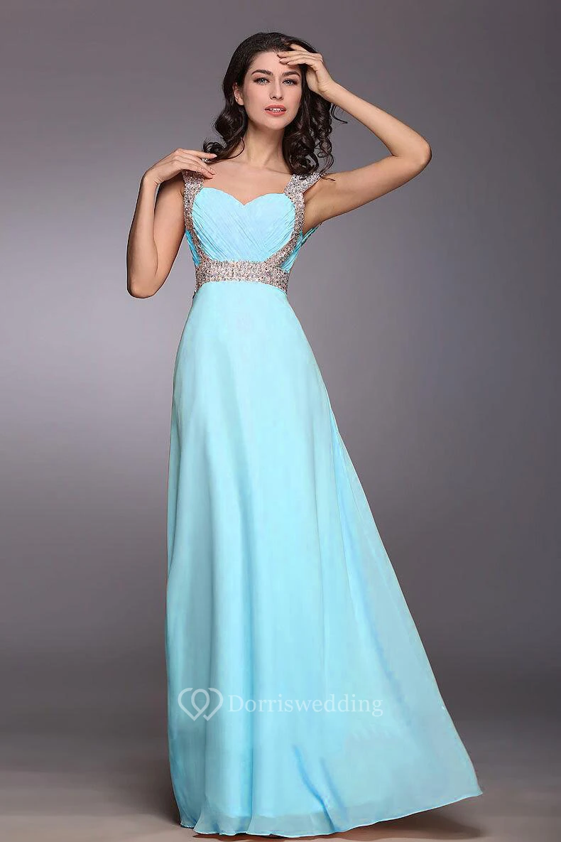 Glamorous Sweetheart Crystals Chiffon Prom Dress Long Lace Up