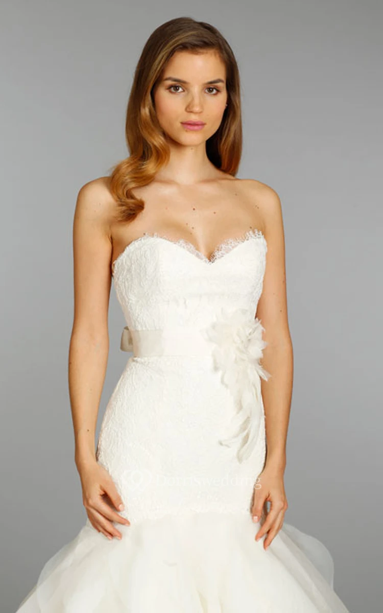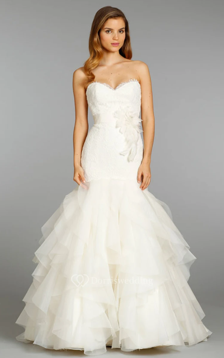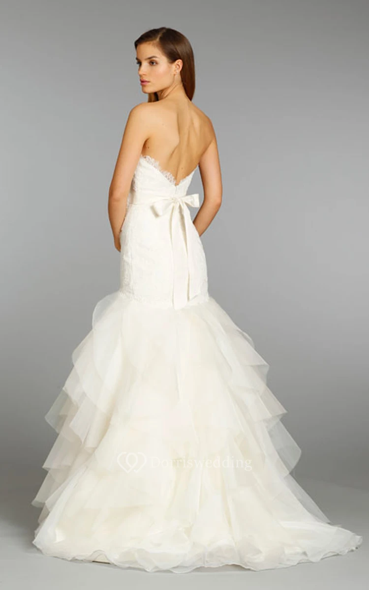 Glamorous Sweetheart Neckline Organza Ruffle Dress With Lace Bodice
