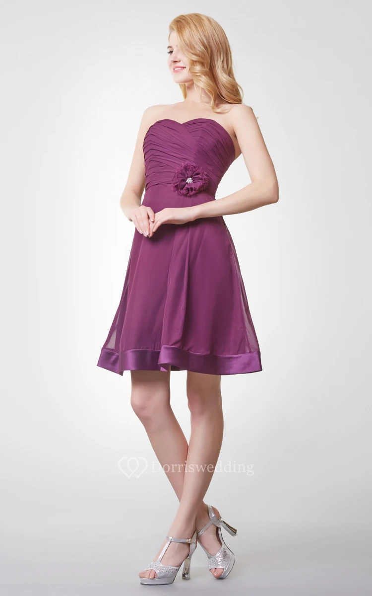 Glamorous Sweetheart Ruched Knee Length Chiffon Dress With Backless