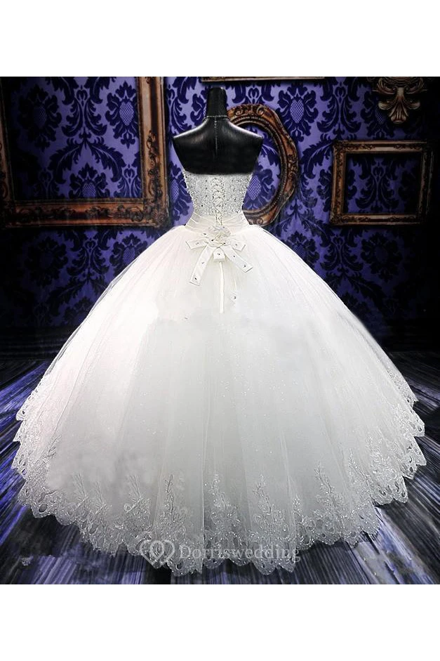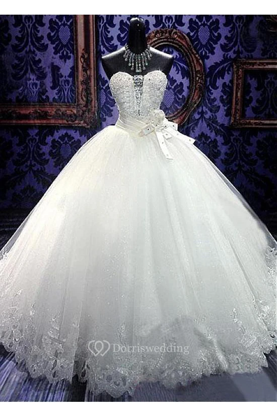 Glamorous Sweetheart Sleeveless Tulle Lace Wedding Dress With Beadings Crystals