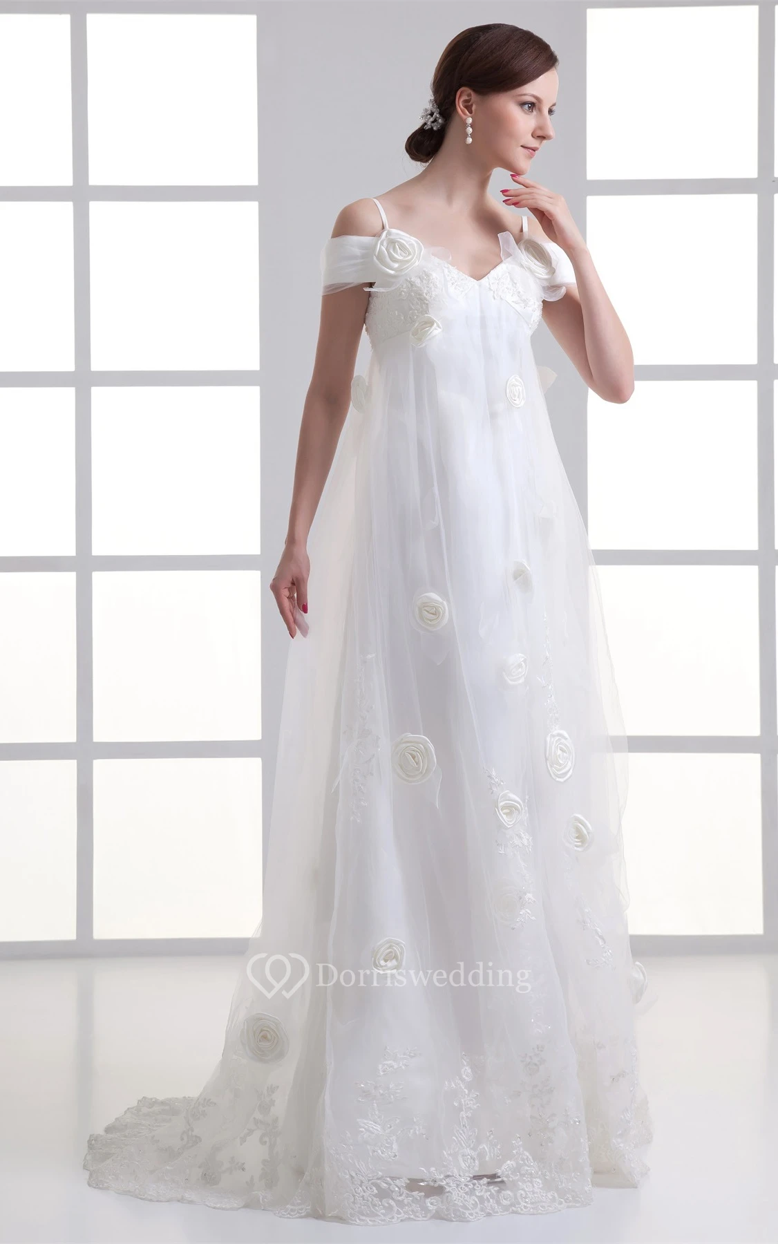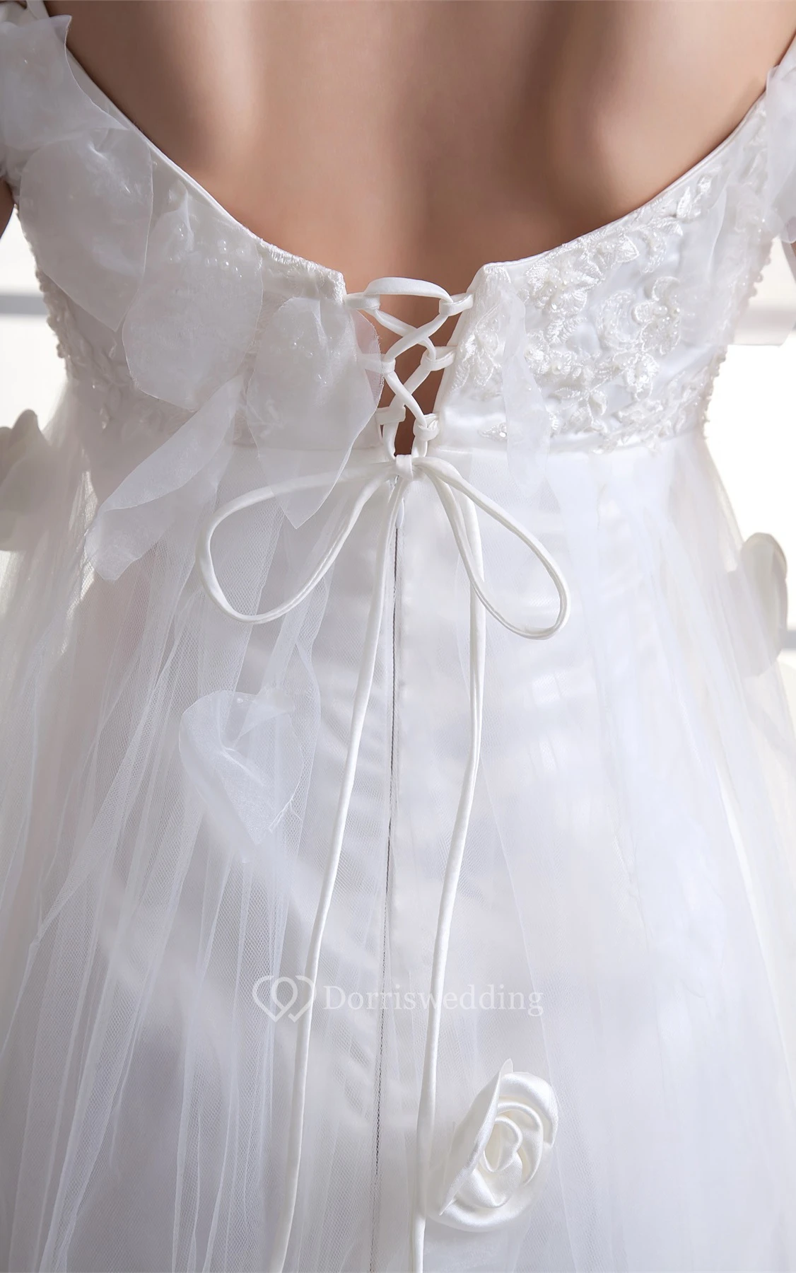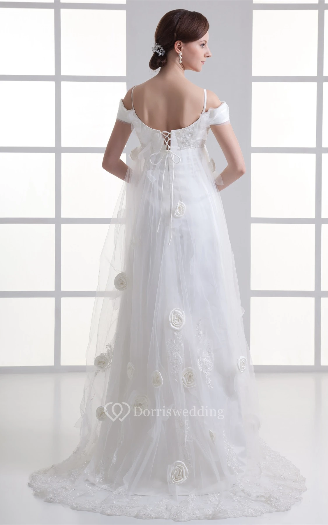 Glossy Sleeveless a Line Satin Off the Shoulder Wedding Dresses