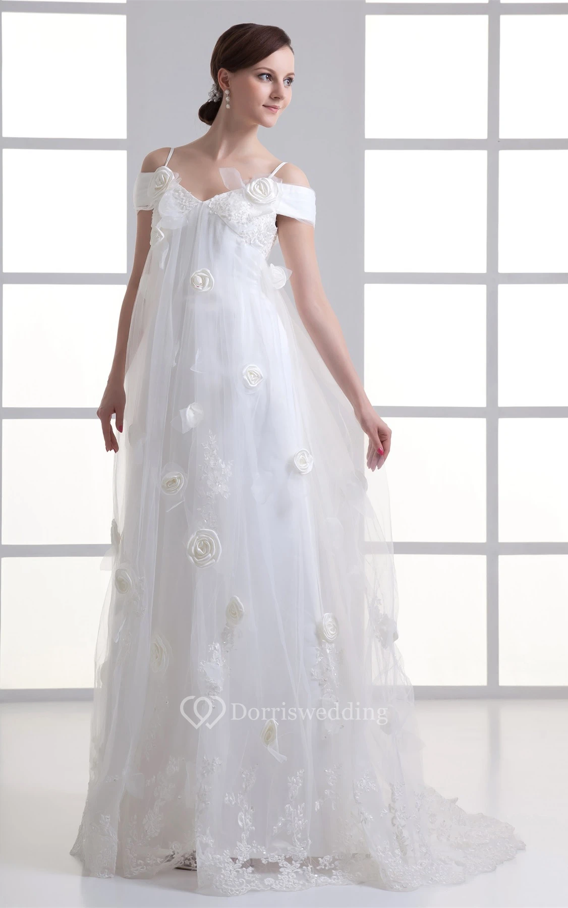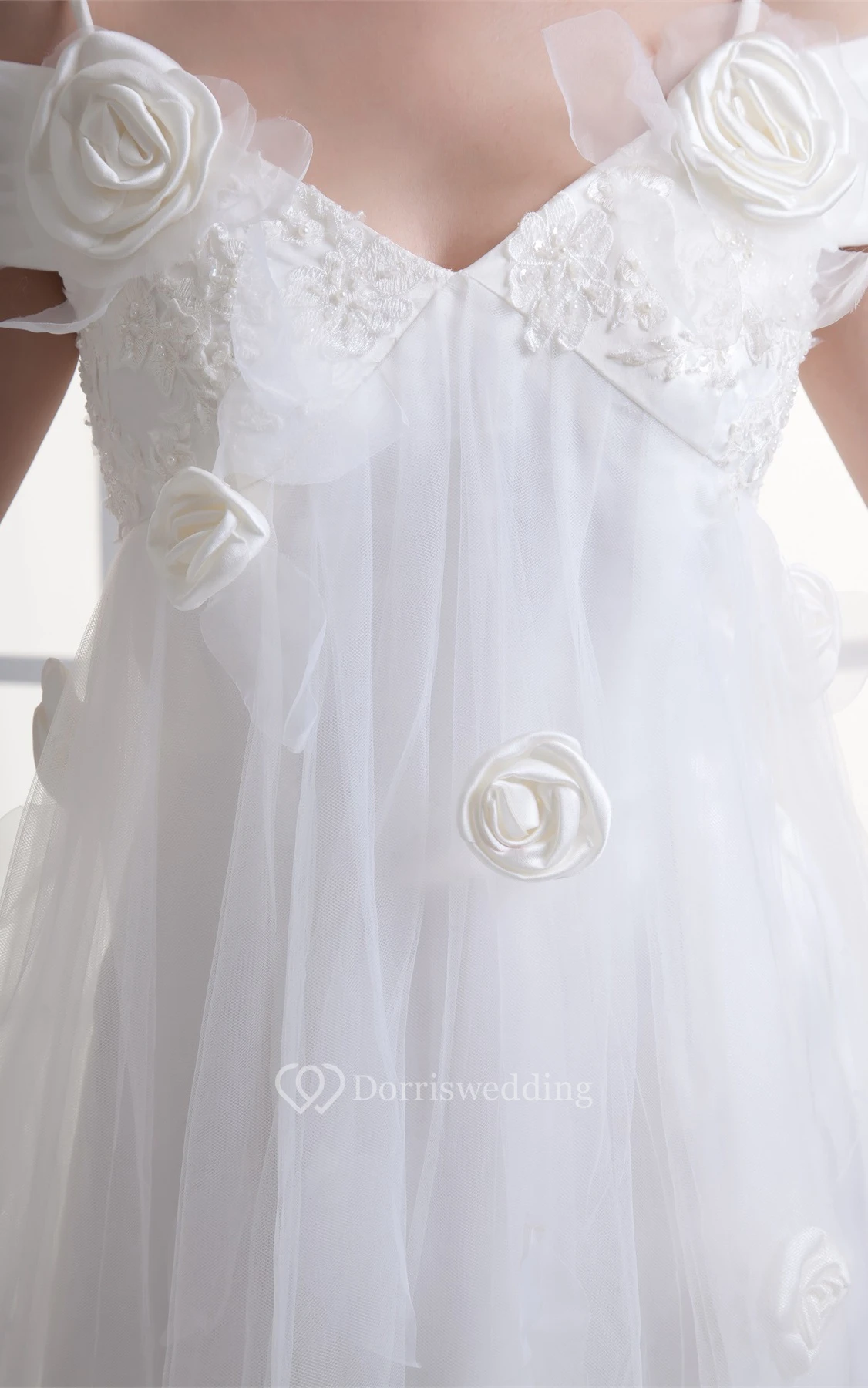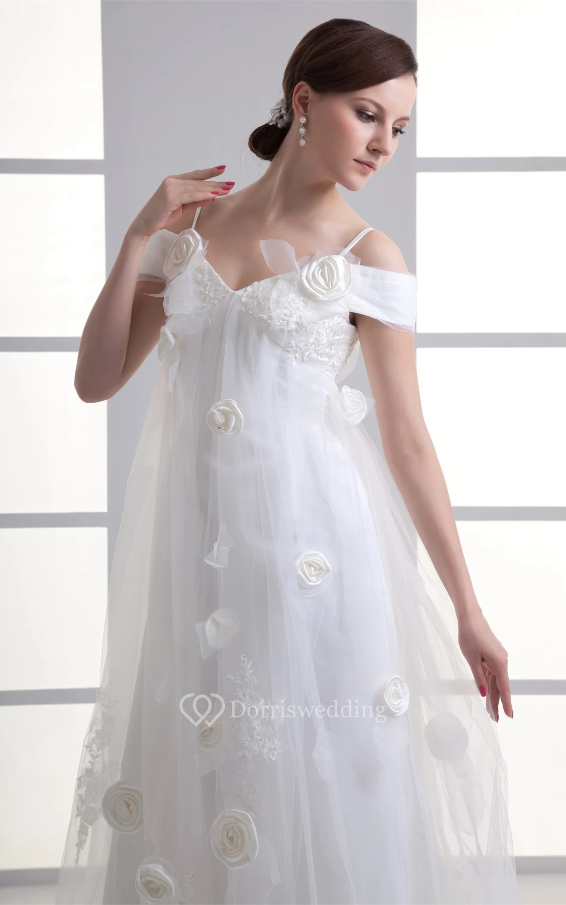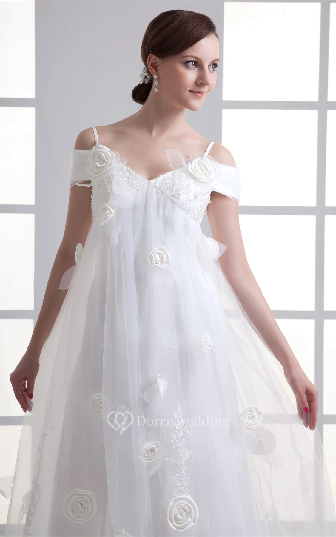 Glossy Sleeveless a Line Satin Off the Shoulder Wedding Dresses