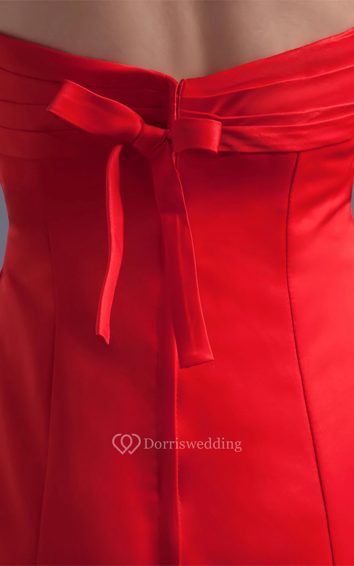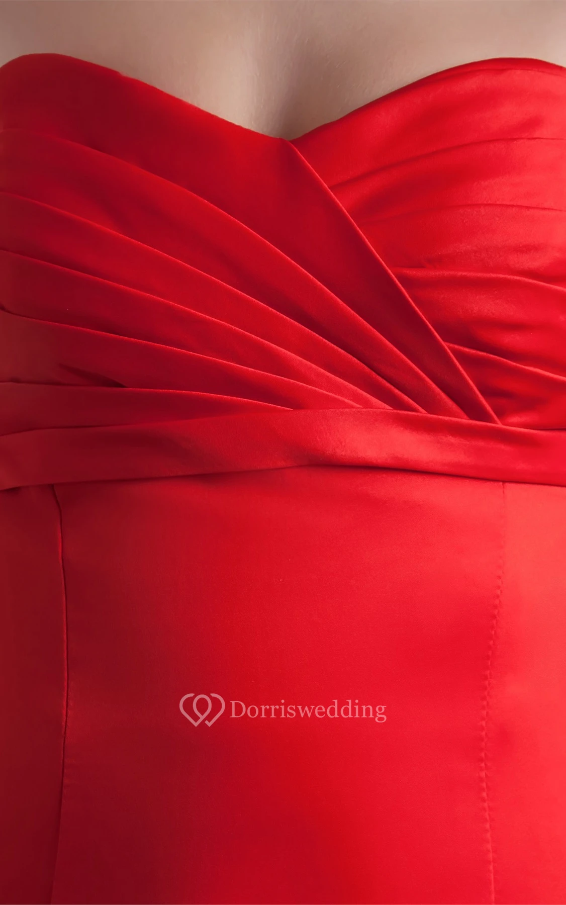Glossy Sleeveless Midi Satin a Line Sweetheart Bridesmaid Dresses
