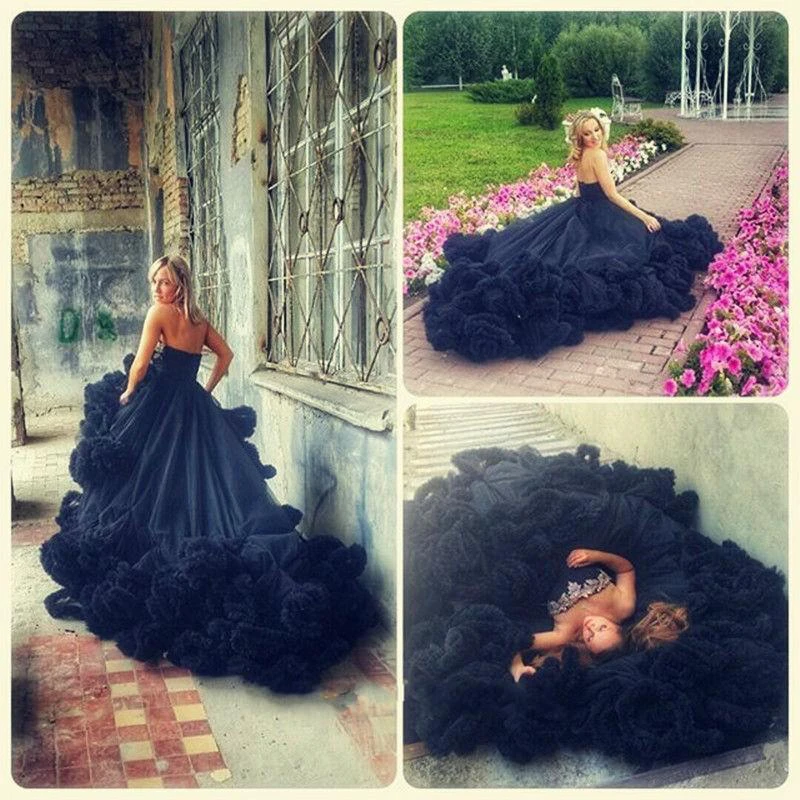 Gorgeous Appliques Ruffles Black Evening Dress Court Train Sleeveless