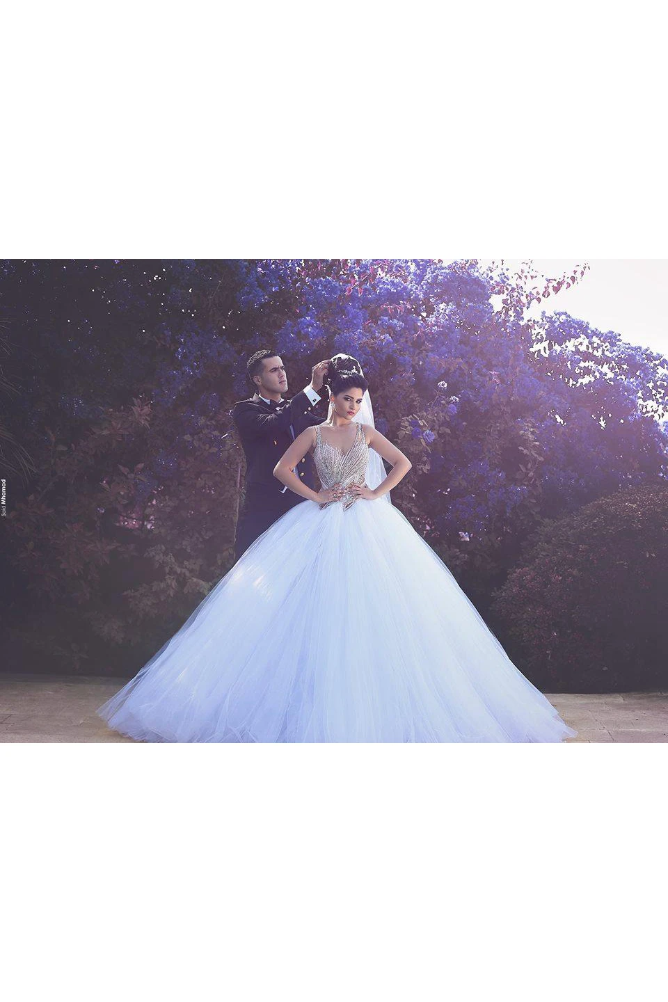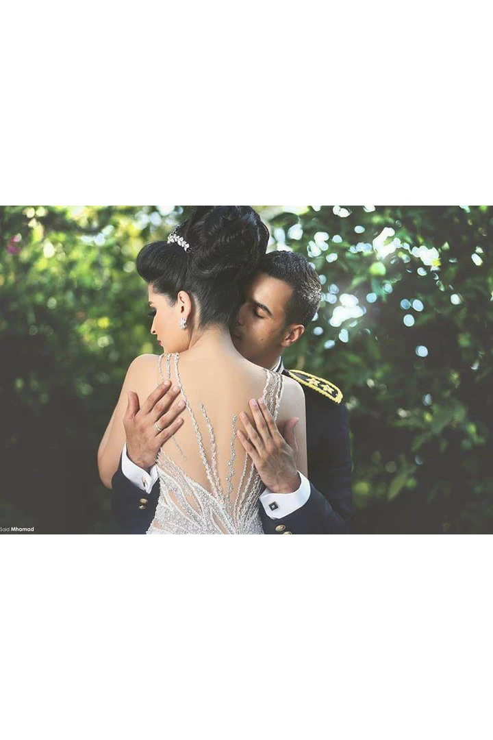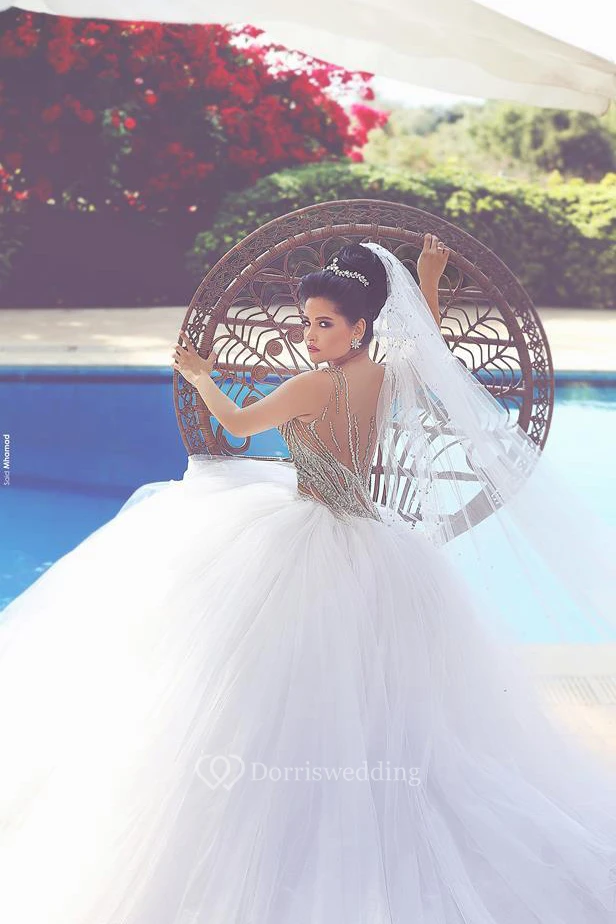 Gorgeous Beadings Tulle White Wedding Dress Ball Gown Straps Court Train