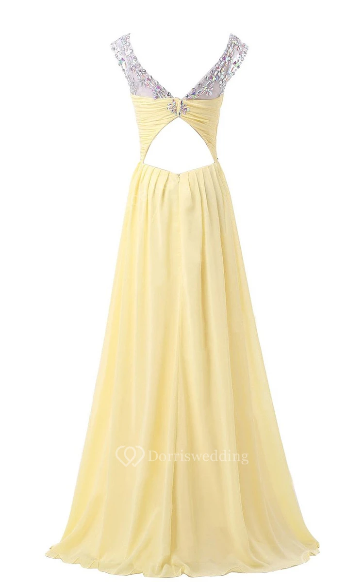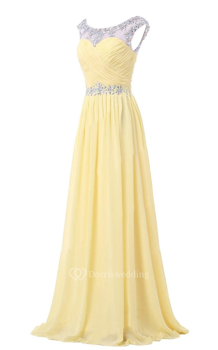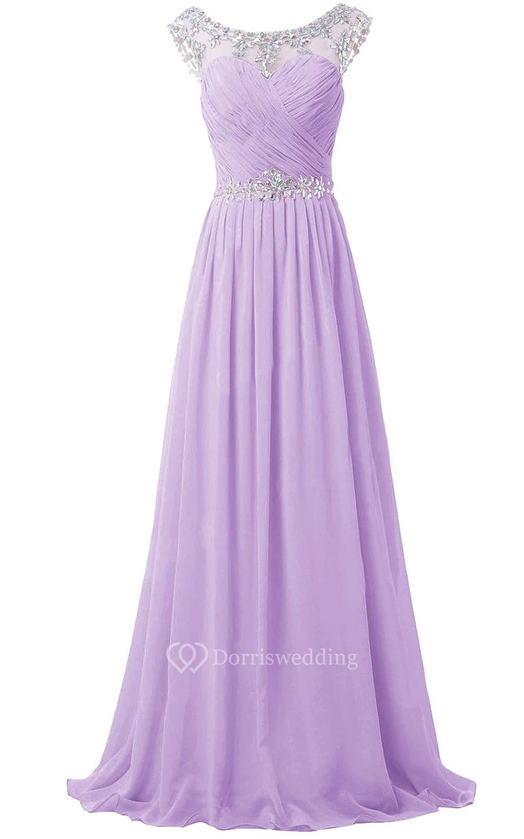 Gorgeous Cap-sleeve Scoop Crystal-beaded Chiffon A-line Dress