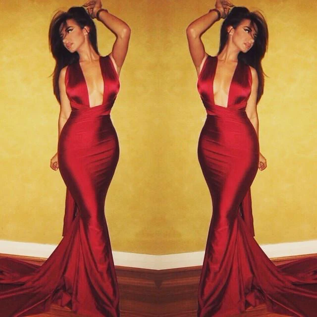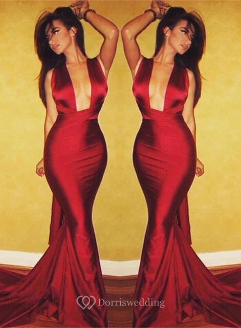 Gorgeous Deep V-Neck Sleeveless Prom Dresses Cross Back Long