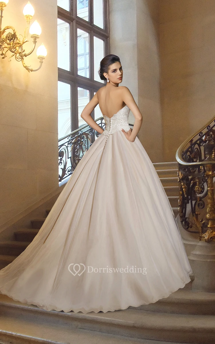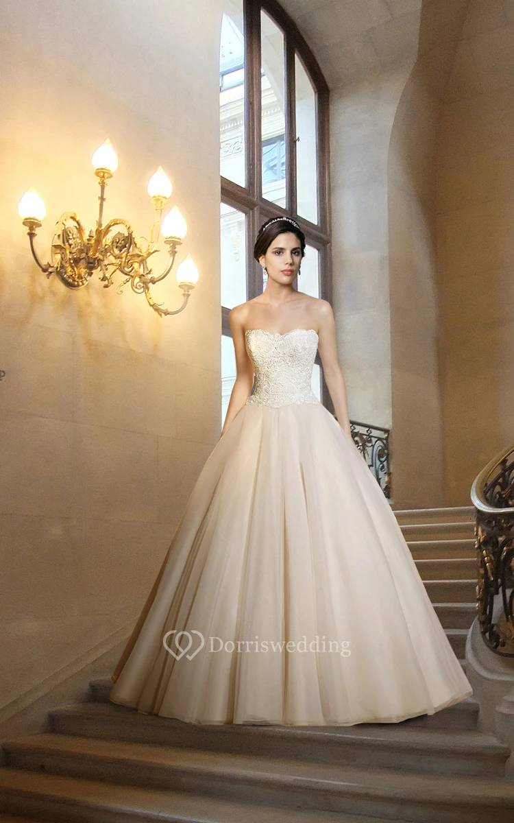 Gorgeous Floor Length Wedding Ball Gown with Lace Bodice
