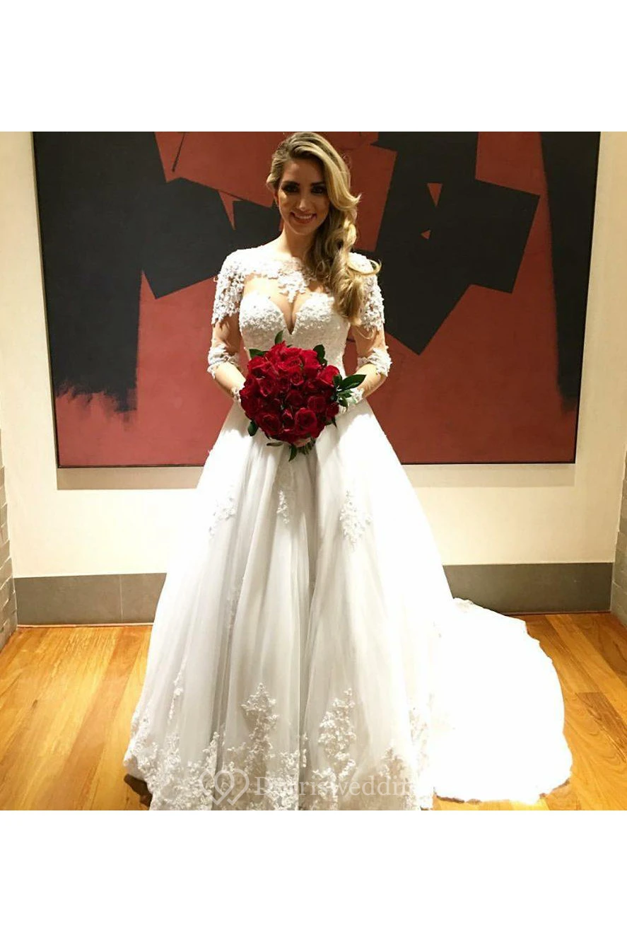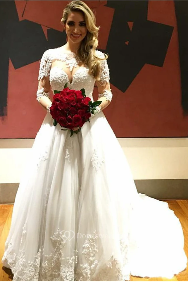 Gorgeous Long Sleeve Lace Wedding Dress Princess A-line