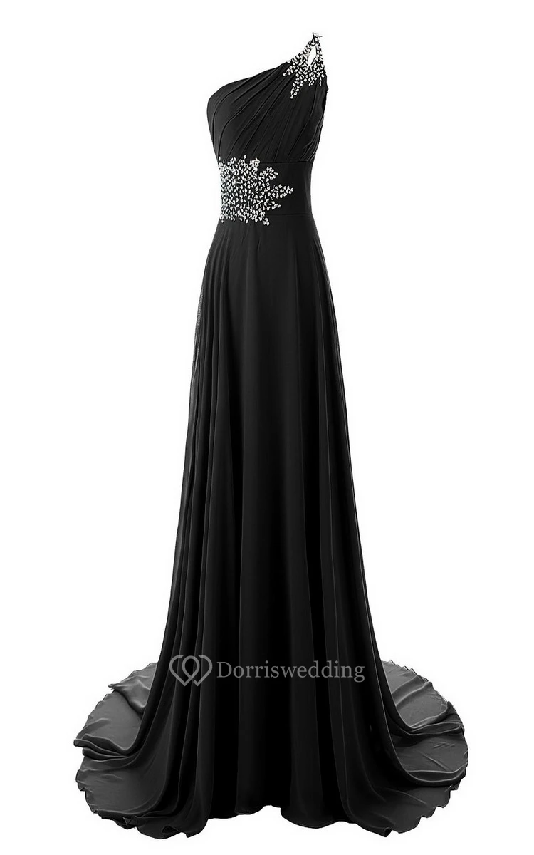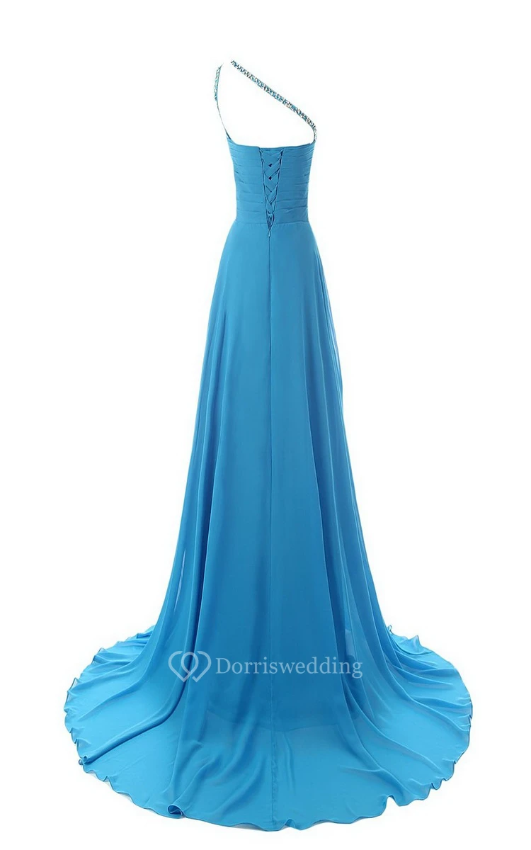 Gorgeous One-shoulder Court Train With Crystal Embellishments