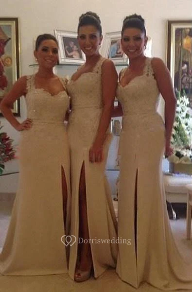 Gorgeous Sleeveless Lace Appliques Bridesmaid Dress Front Split Zipper Button Back