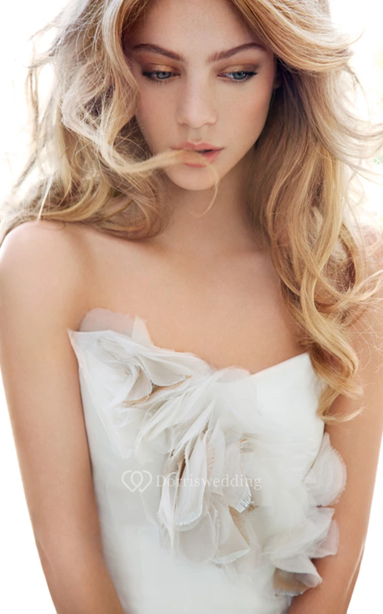 Gorgeous Strapless Floral Bodice Organza Dress With Illusion Corset Back