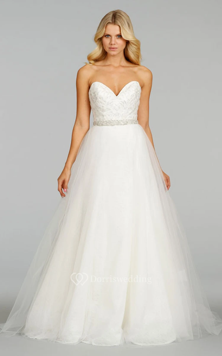 Gorgeous Sweetheart Neckline Tulle Ball Gown With Jeweled Belt