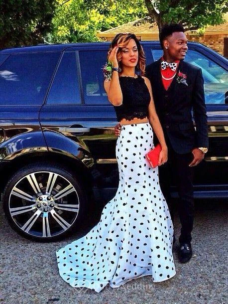 Gorgeous Two Pieces Prom Dresses Black Lace Mermaid Dot