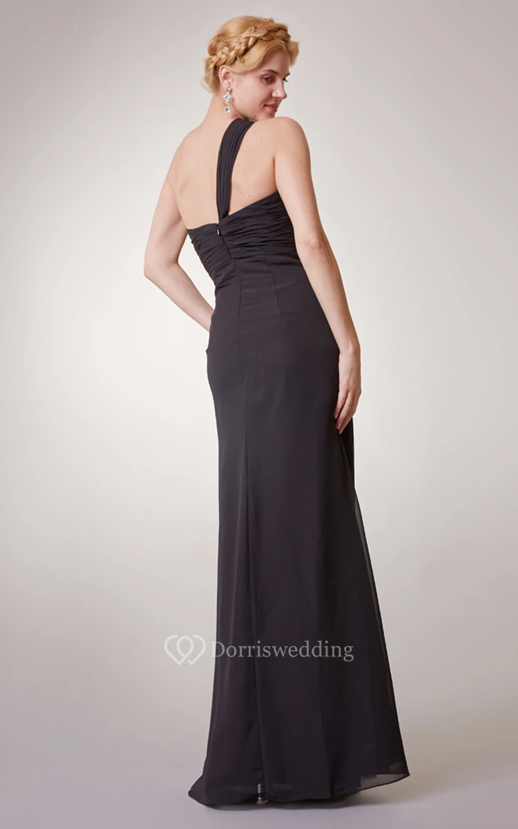 Gossamery One-shoulder Chiffon Dress With Empire Waist