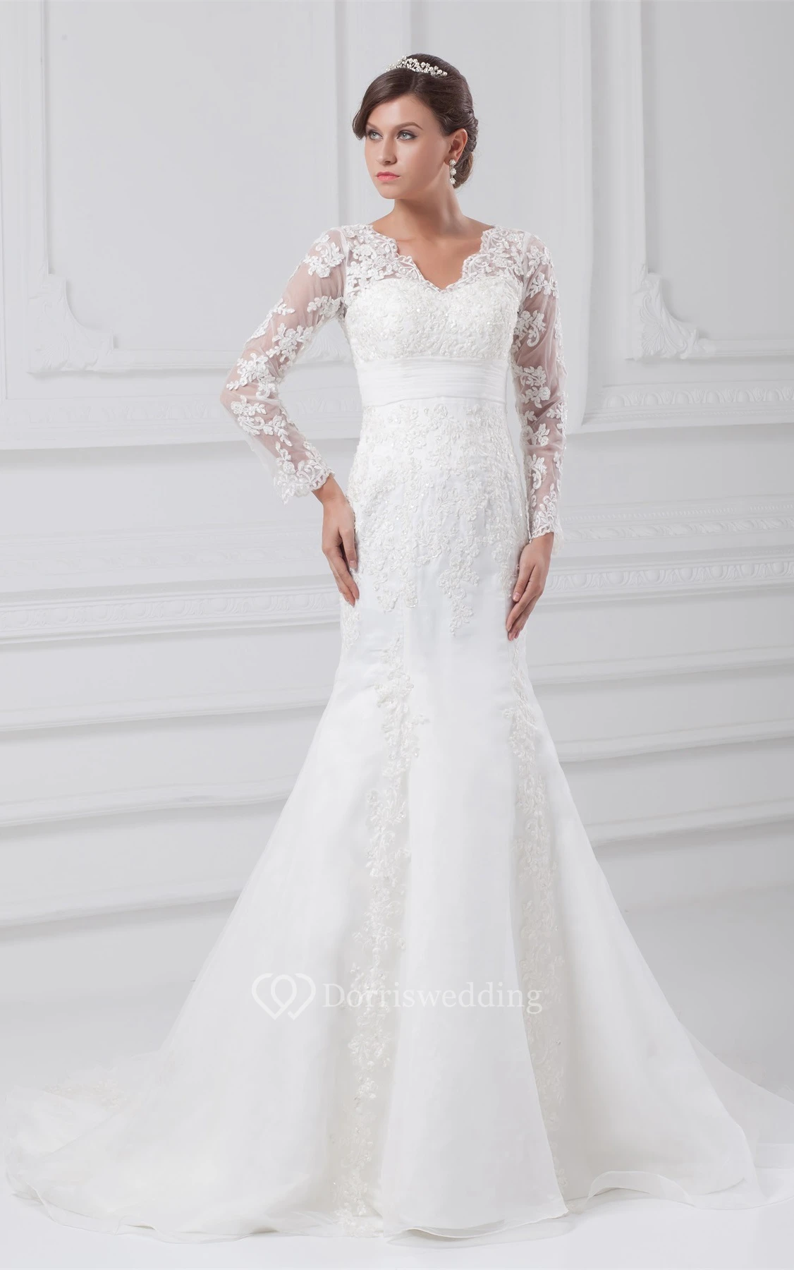 Gossamery Satin Organza Long Sleeve Trumpet Wedding Dresses With Jackets
