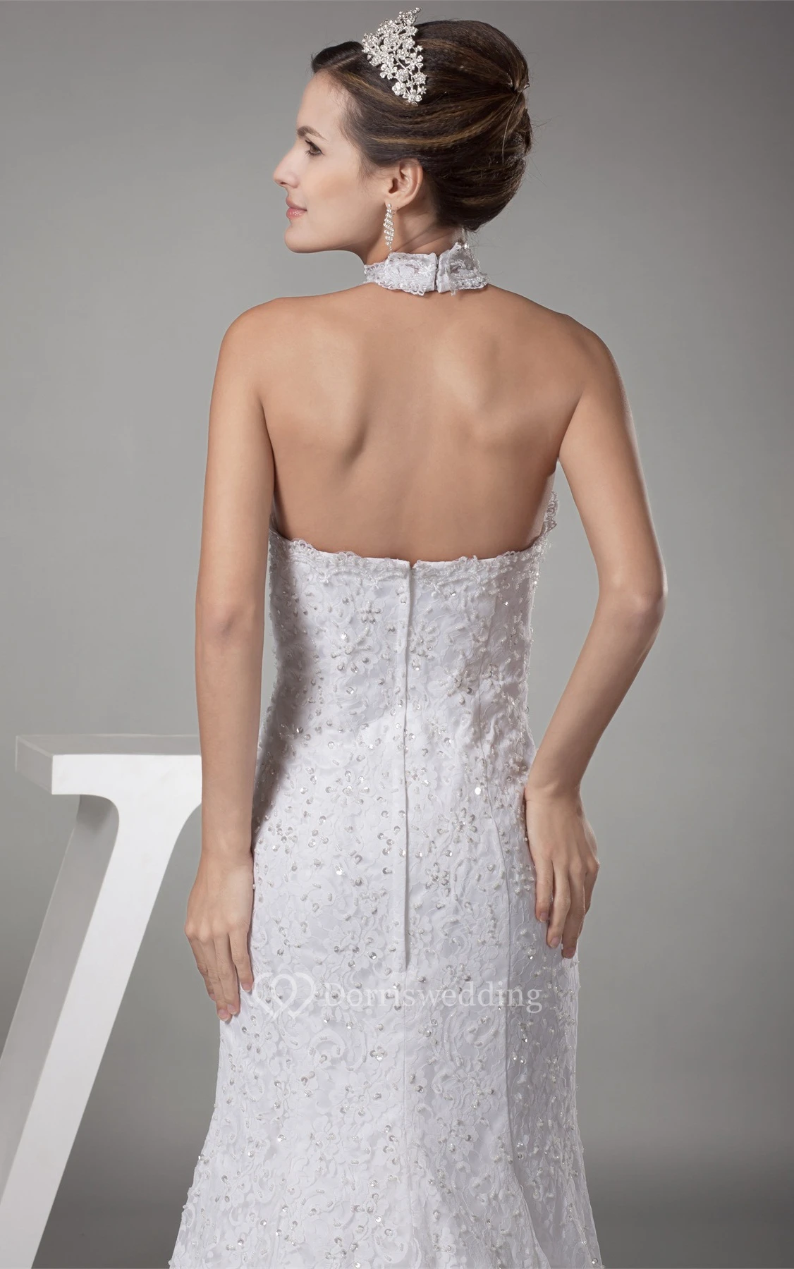 Graceful Backless A-Line High-Neck Appliques and Dress With Beading