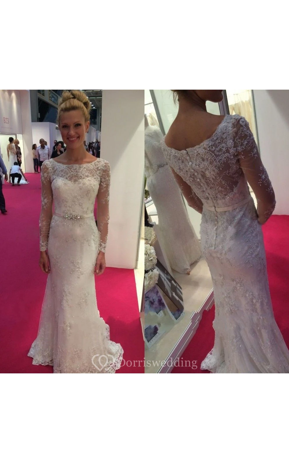 Graceful Bateau Neckline Long-sleeved Lace Long Mother Of Bride Dress Crystal Sash