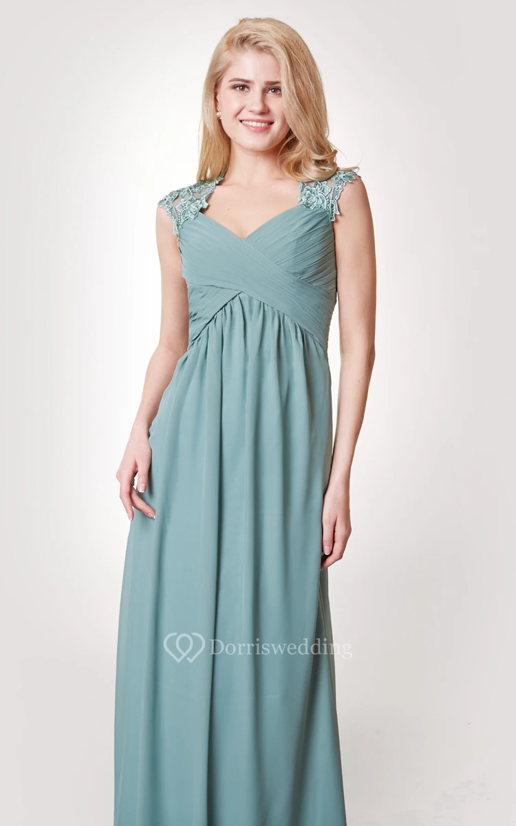 Graceful Cap-sleeved Empire Chiffon A-line Gown Lace Appliques