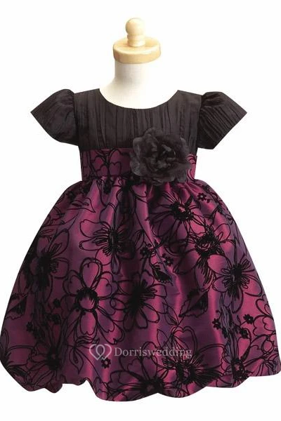 Tiered Cap-Sleeve Taffeta Flower Girl Dress