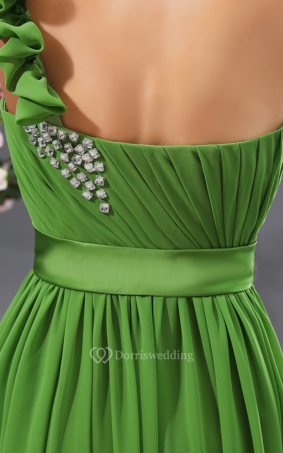 Graceful Floral One-Shoulder Chiffon A-Line Gown Has Crystal Details