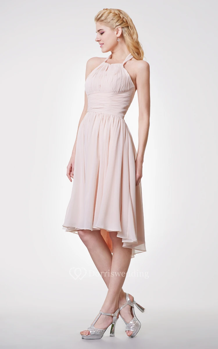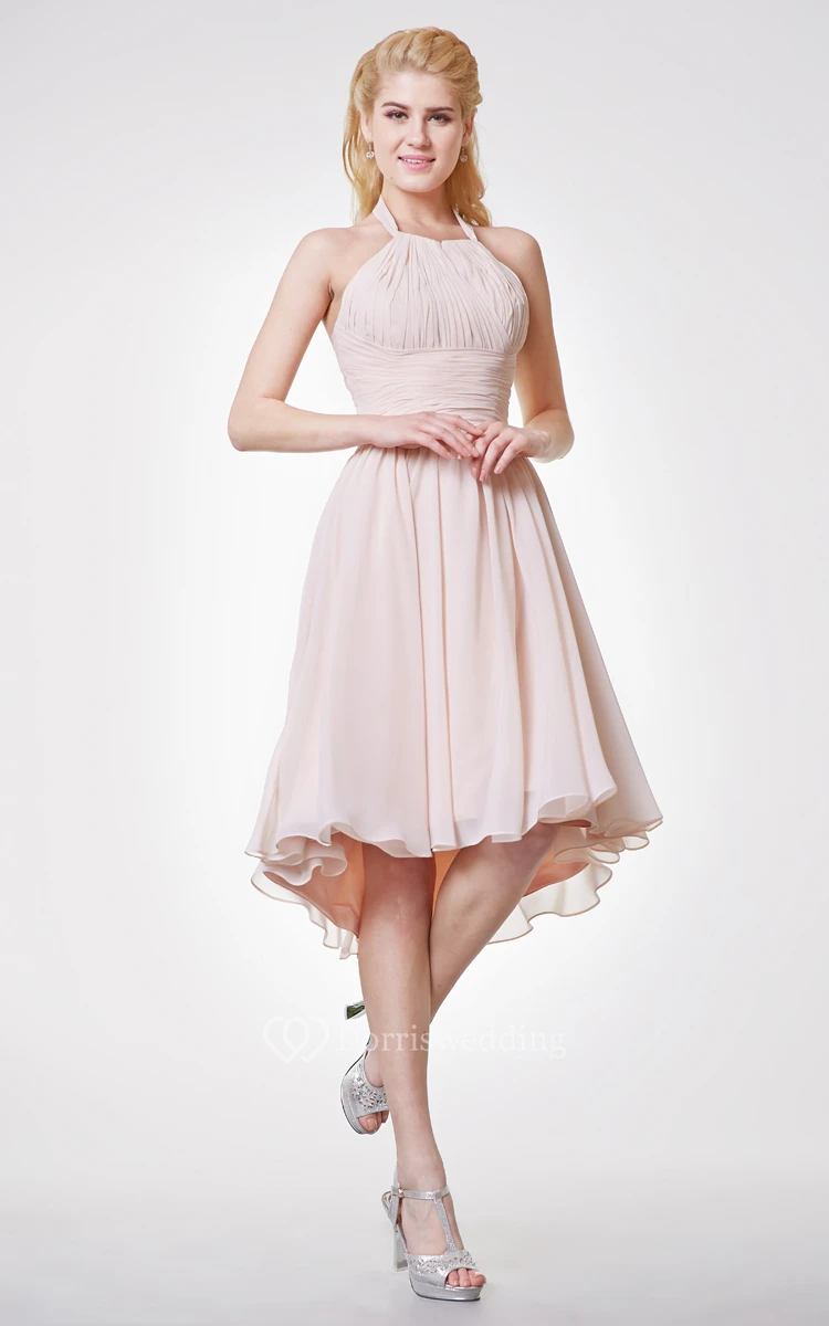 Graceful Halter Neck Empire Chiffon High Low Dress