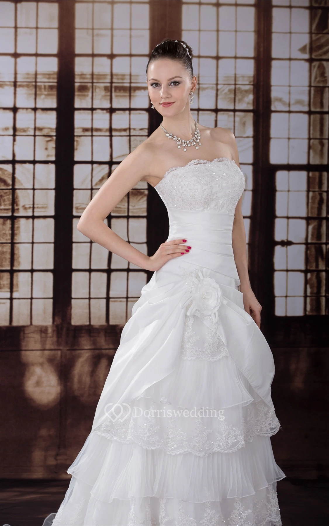 Graceful Jeweled Scalloped Edge Sleeveless A-Line Dress With Tiered Ruffle and Flowers
