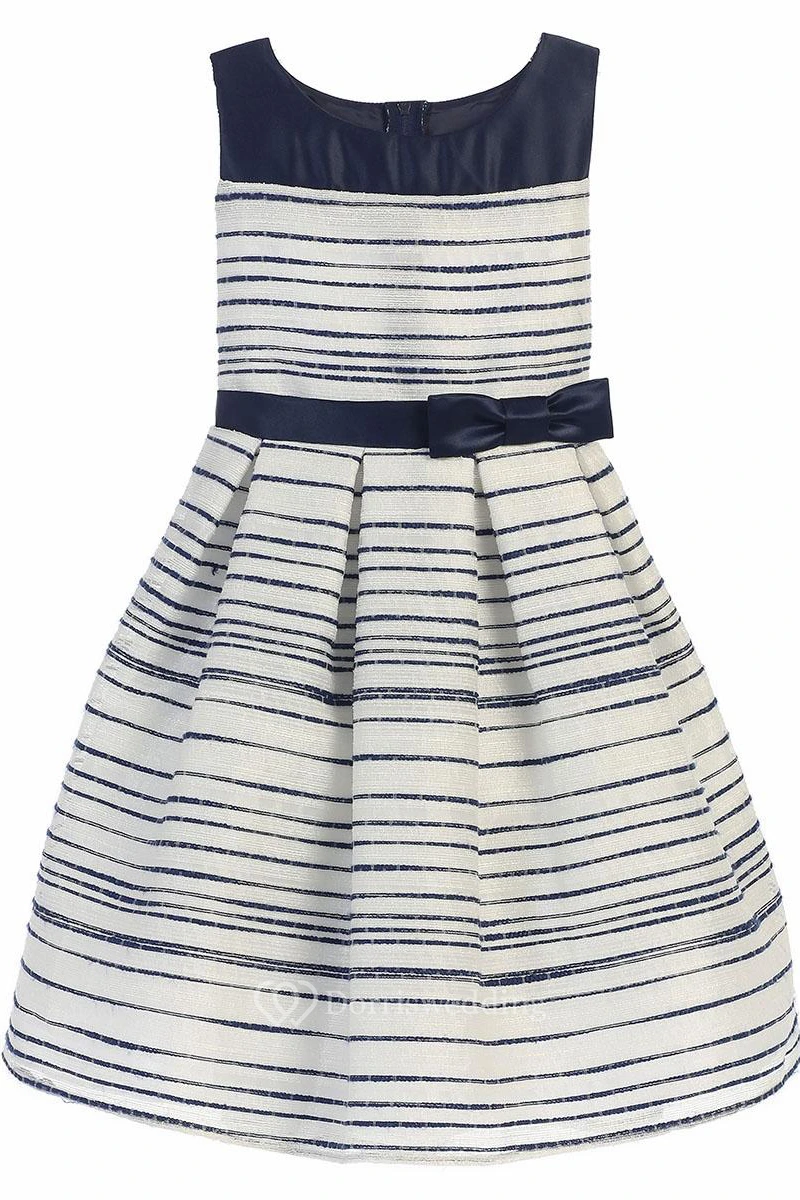Midi Tiered Pleated Satin Flower Girl Dress With Sash