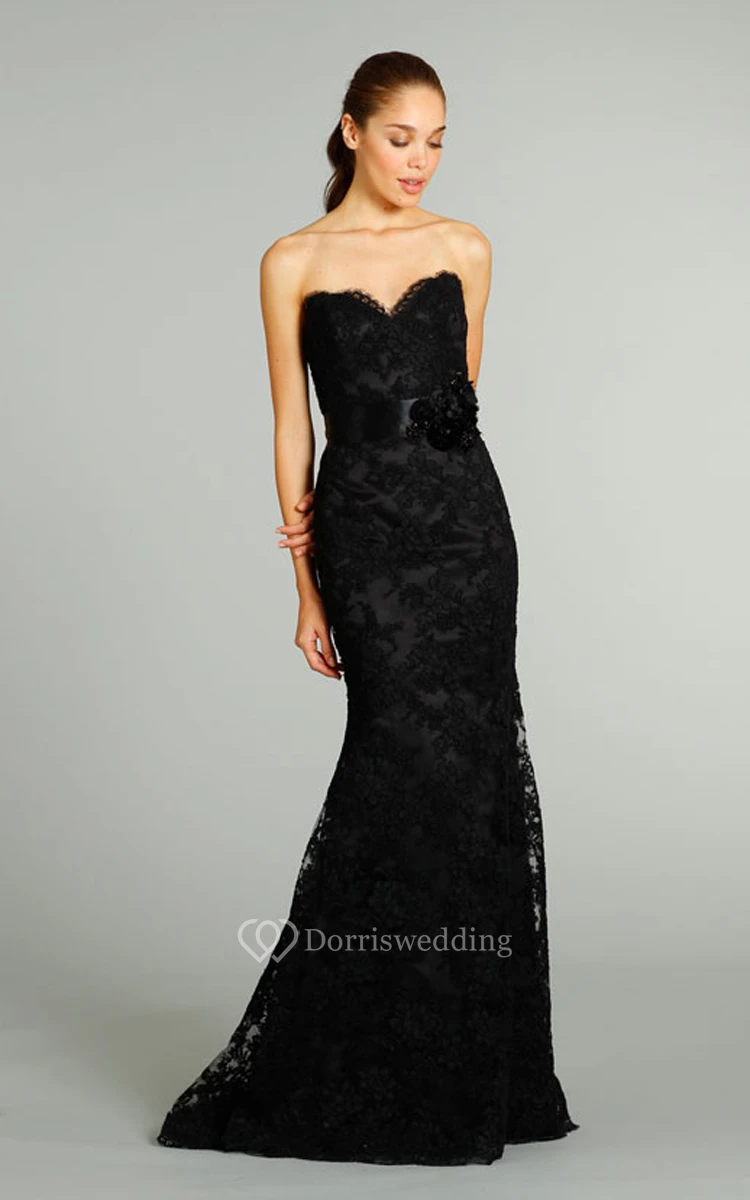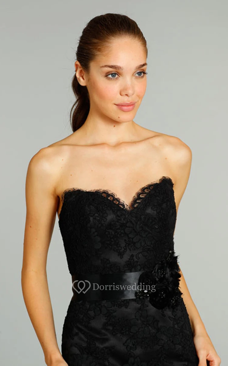 Graceful Sweetheart Neckline Lace Bridal Gown With Floral Embellished Satin Ribbon