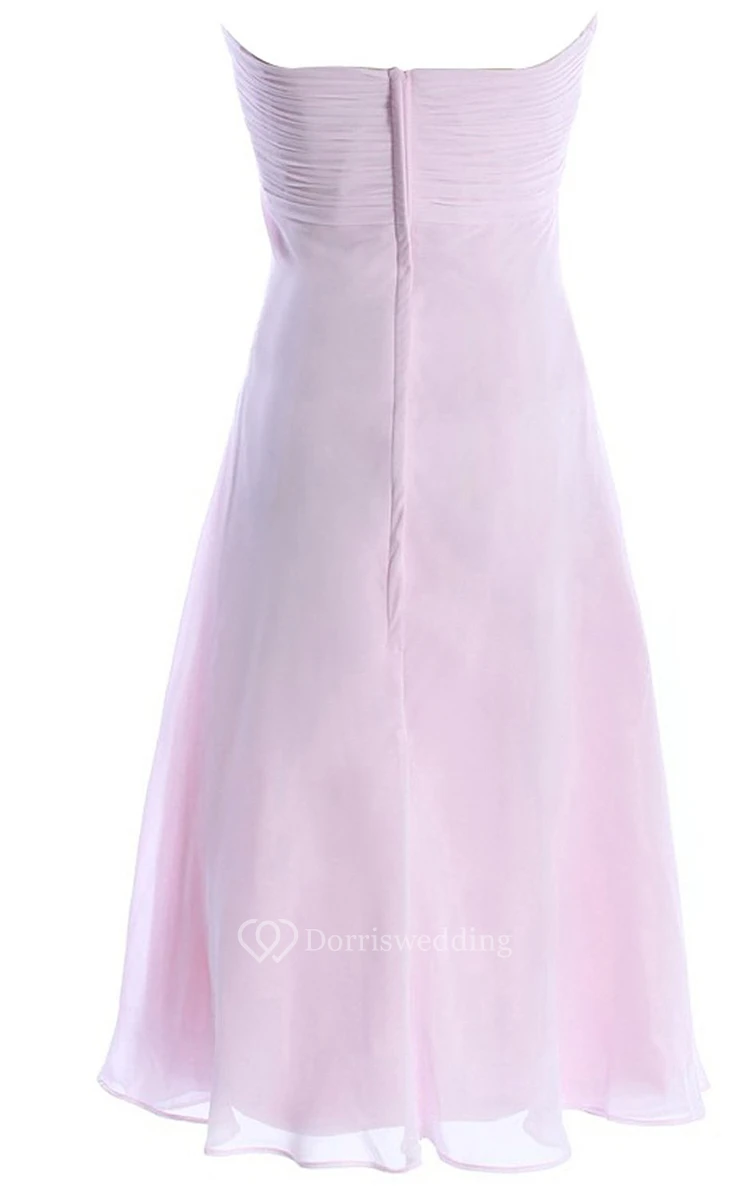 Graceful Tea-length Drapped A-line Gown With Flower