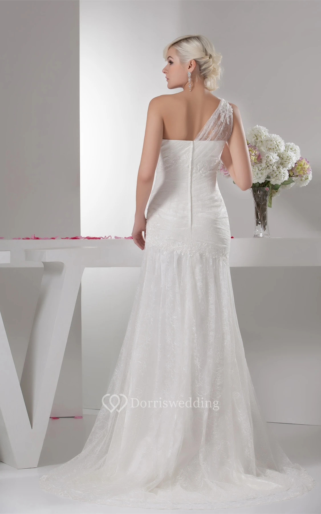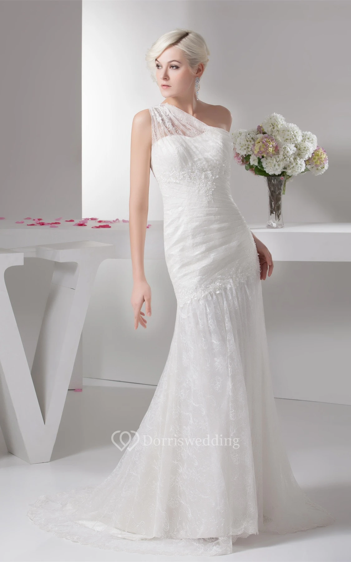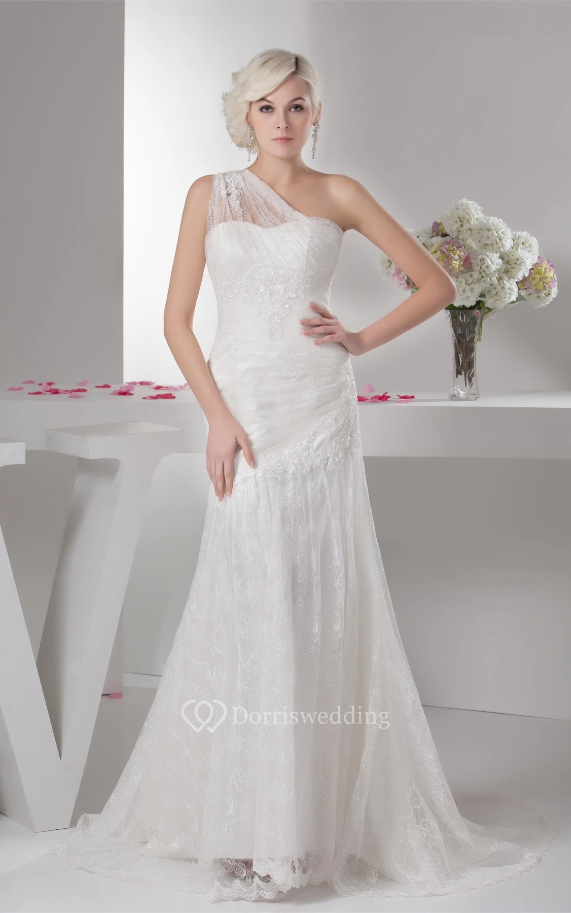 Graceful Tulle Sheath One-Shoulder Beading and Dress With Lace