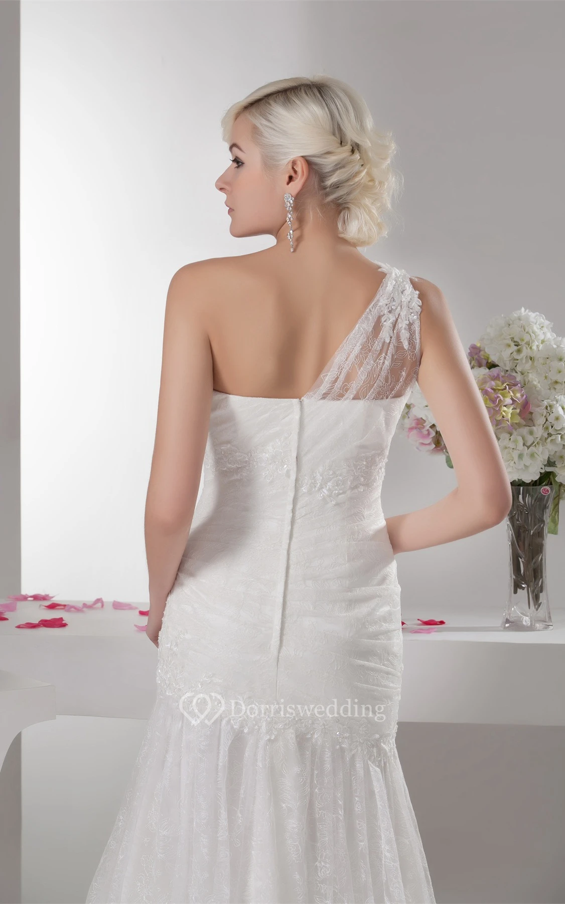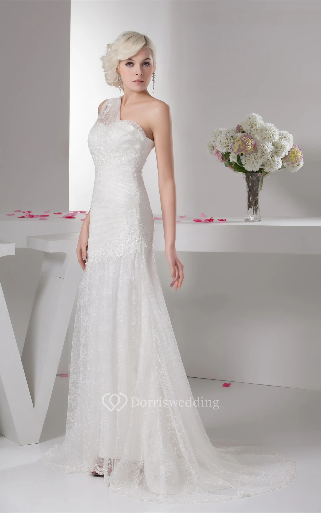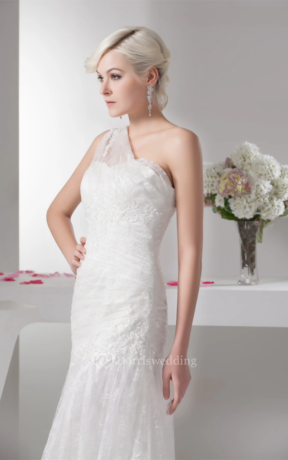Graceful Tulle Sheath One-Shoulder Beading and Dress With Lace