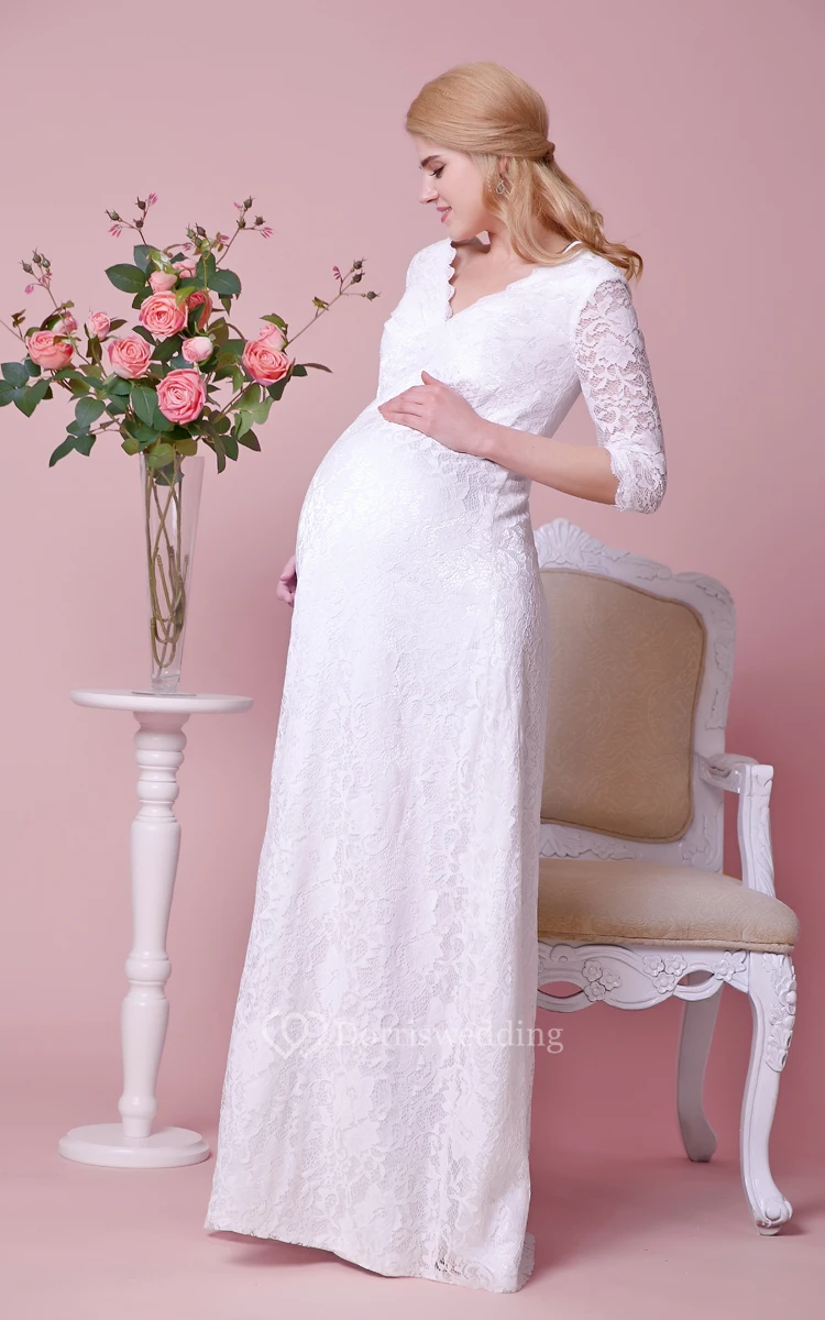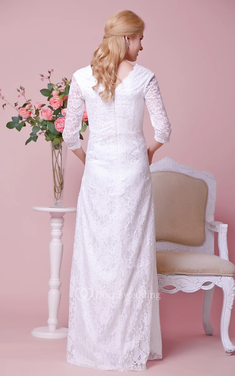 Graceful V-neck 3-4 Sleeved Lace Dress