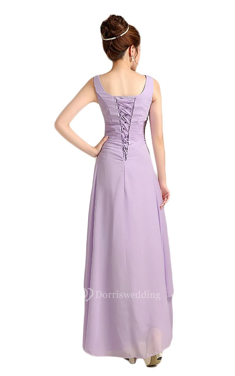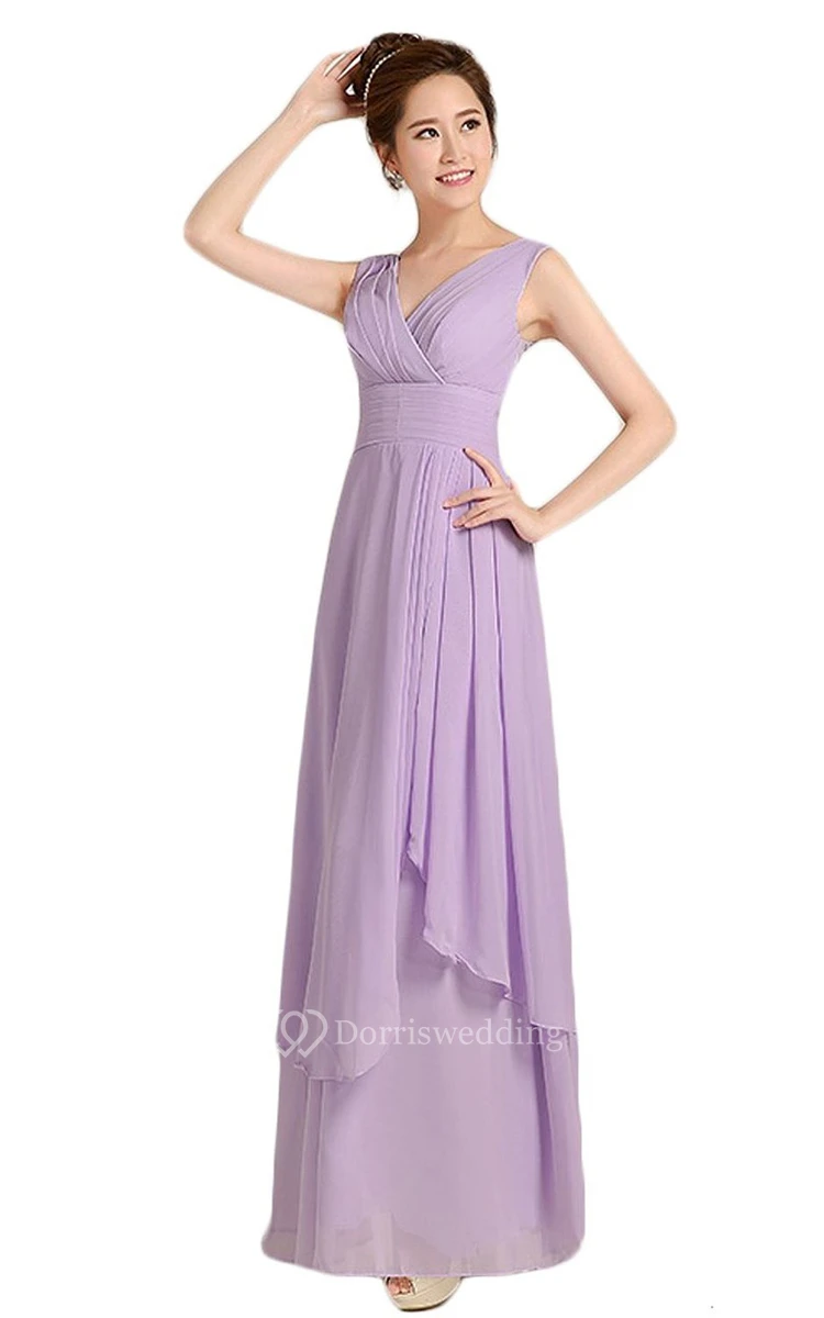 Graceful V-neck Drapped A-line Gown With Lace-up Back