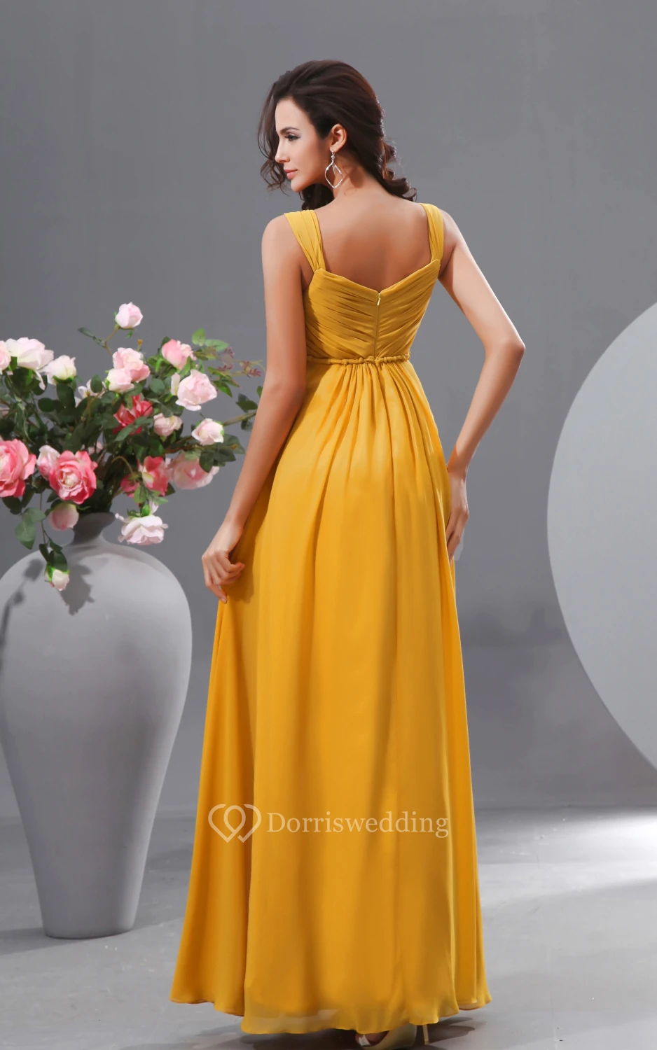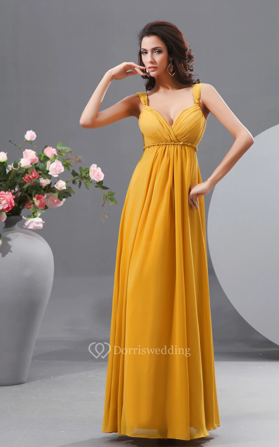 Graceful V-Neck Empire A-Line Chiffon Gown With Unique Waist