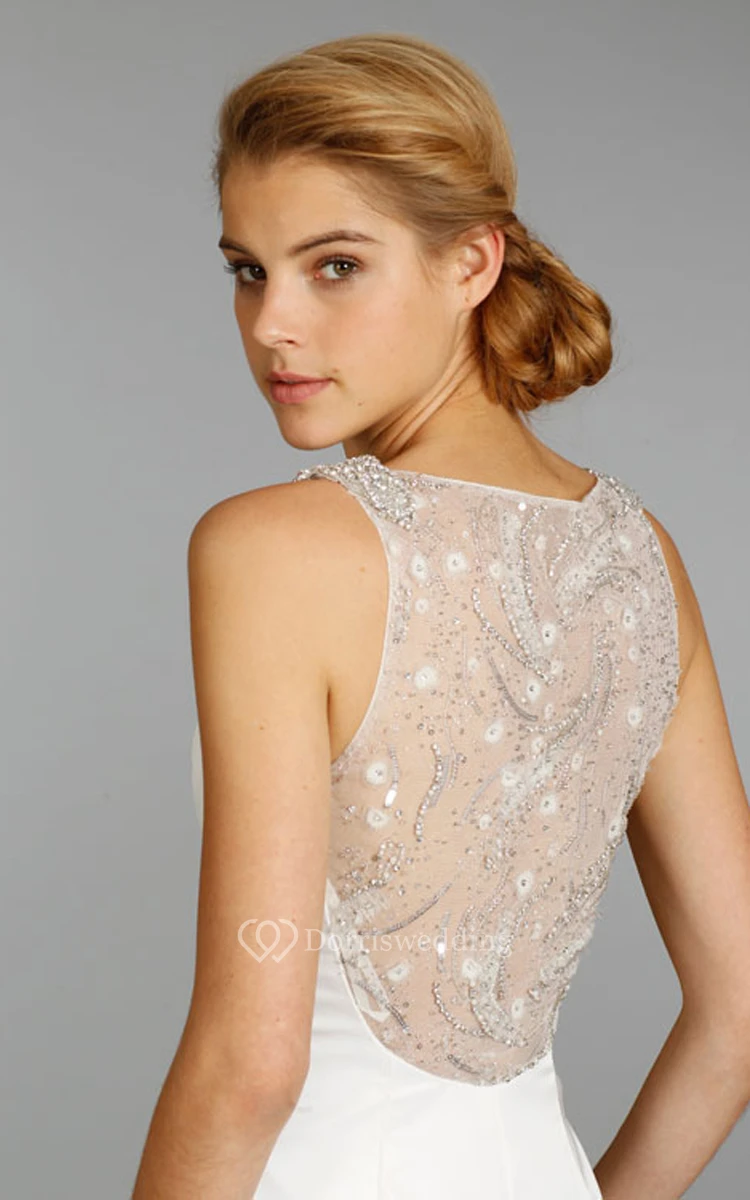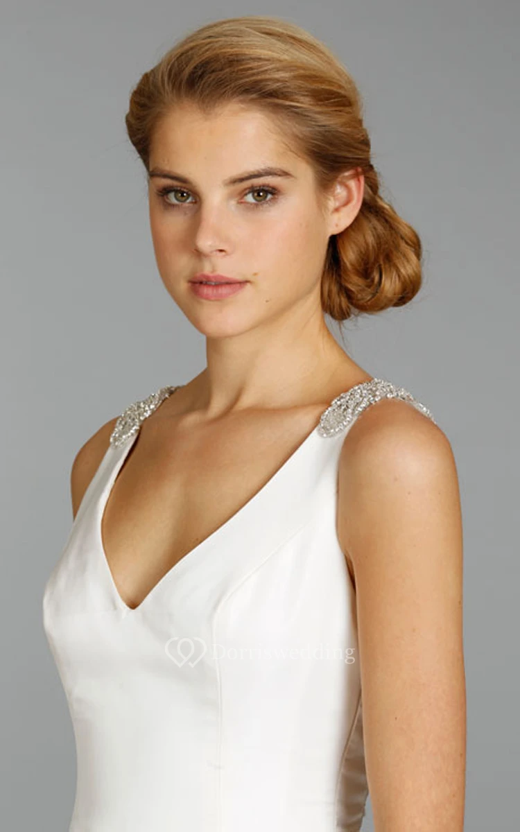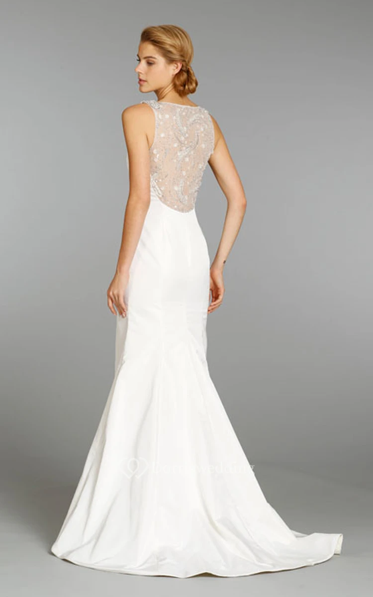 Graceful V-Neck Taffeta Mermaid Dress With Sheer Embroidered Back