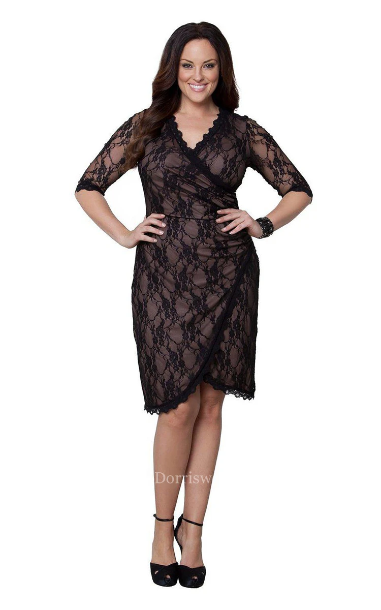 Half Sleeve Lace Short Dress in Wrap Style