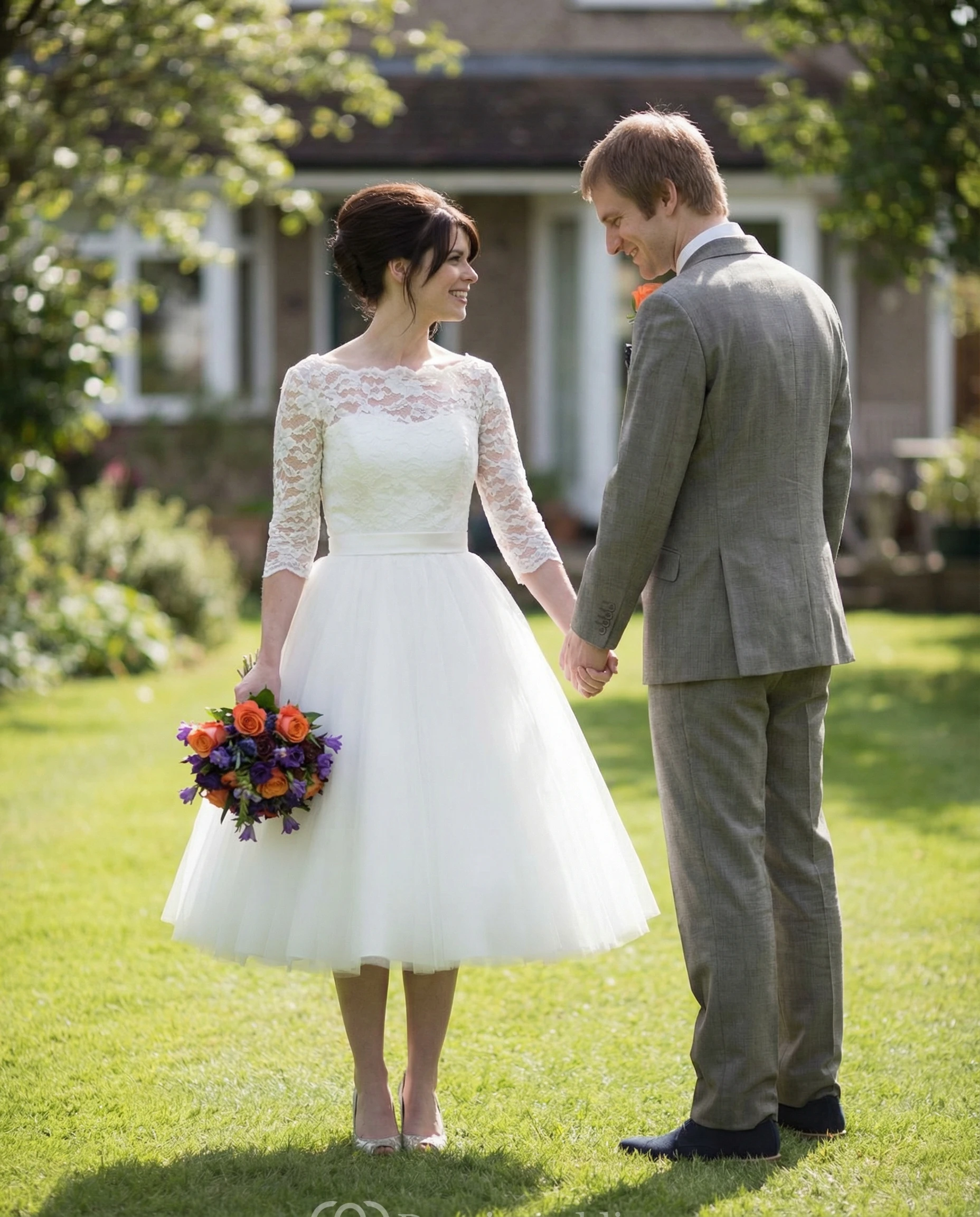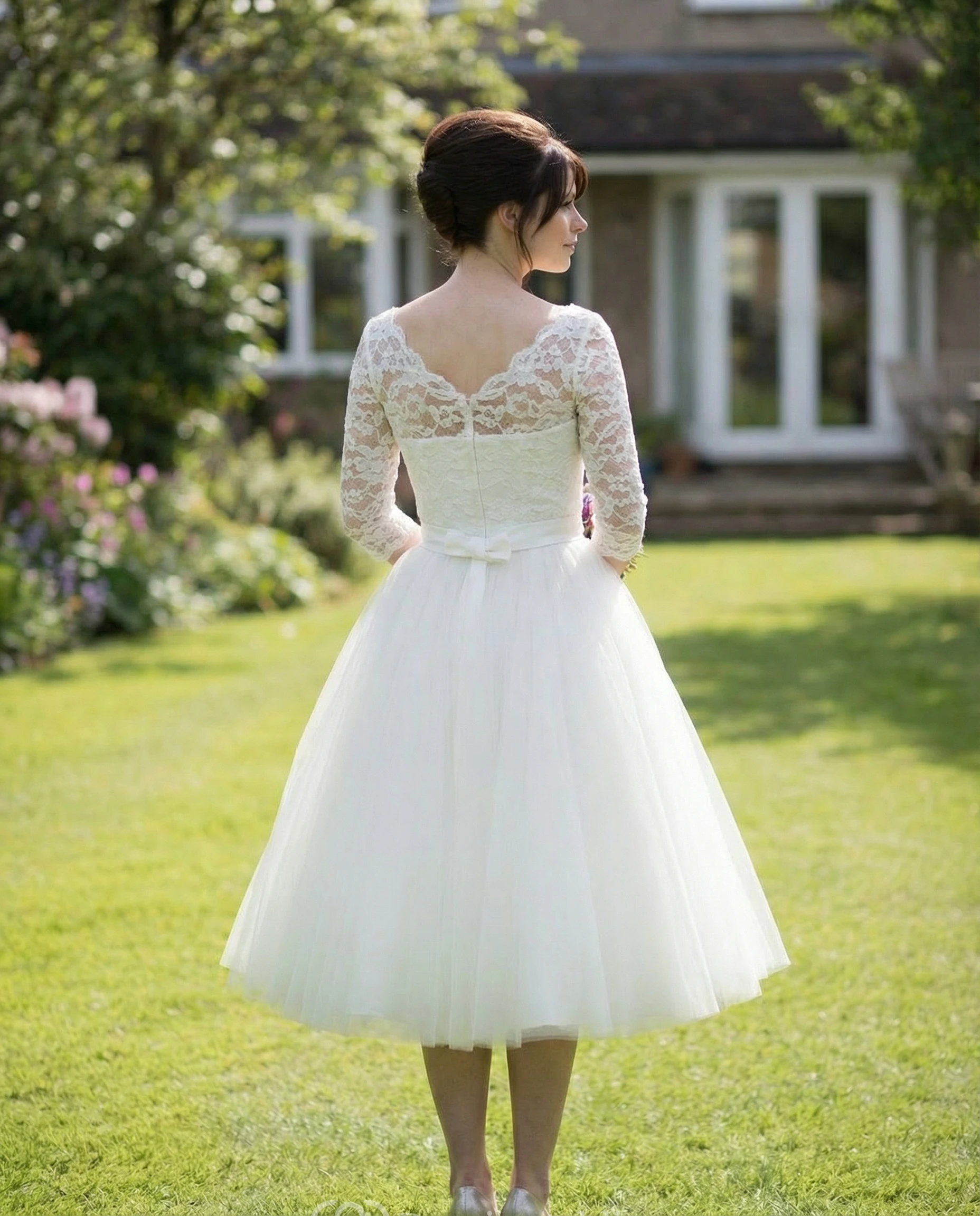 Half Sleeve Tulle & Lace Vow Renewal Dress