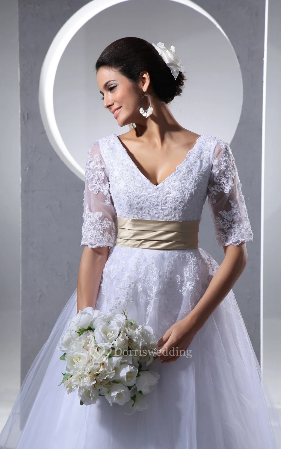 Love the dress! Its beautiful fit was a good surprise. Lace bodice and long sleeves make it a special wedding dress and it is sure to look classy and comfortable on any bride.
