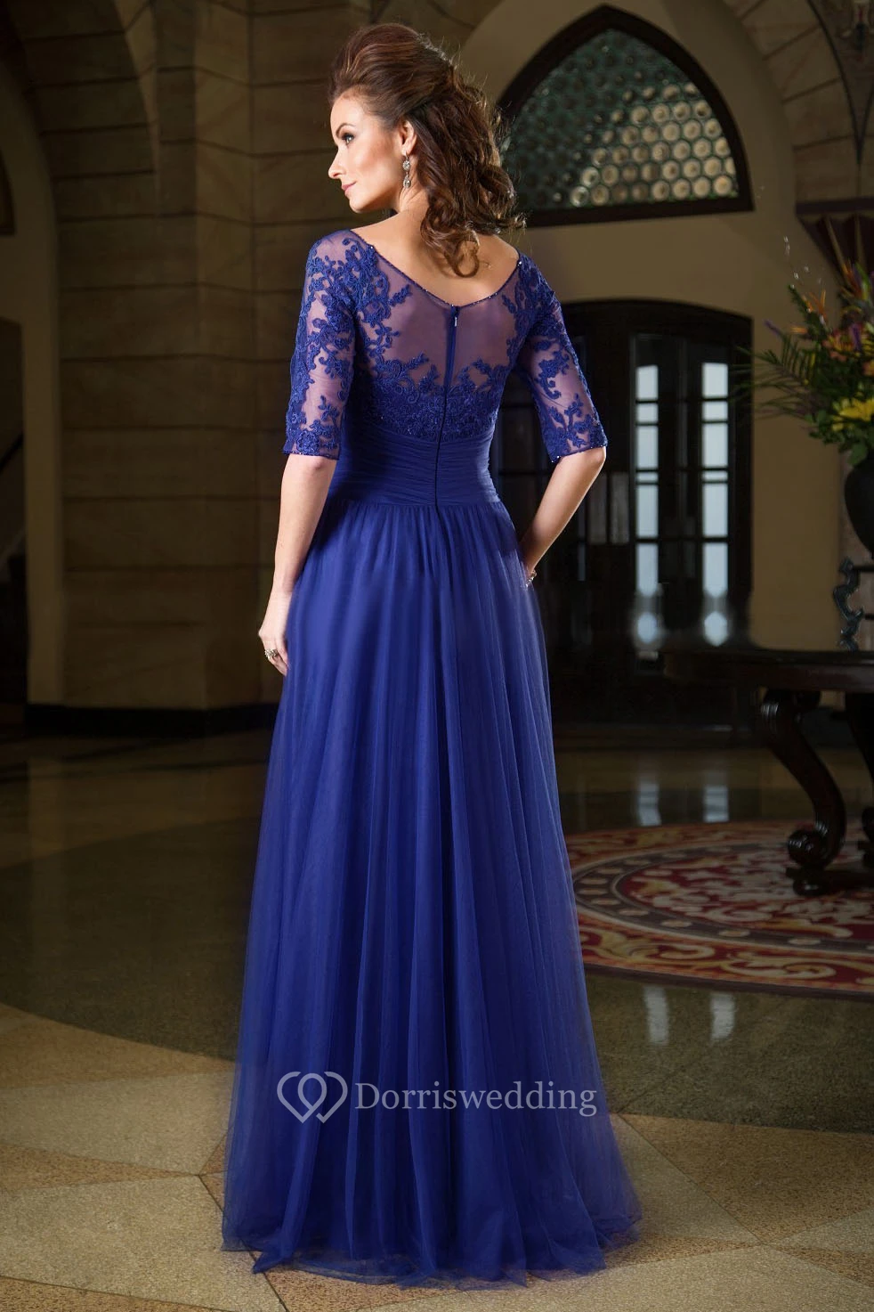 Half-Sleeved A-Line Gown With Appliques And Pleats