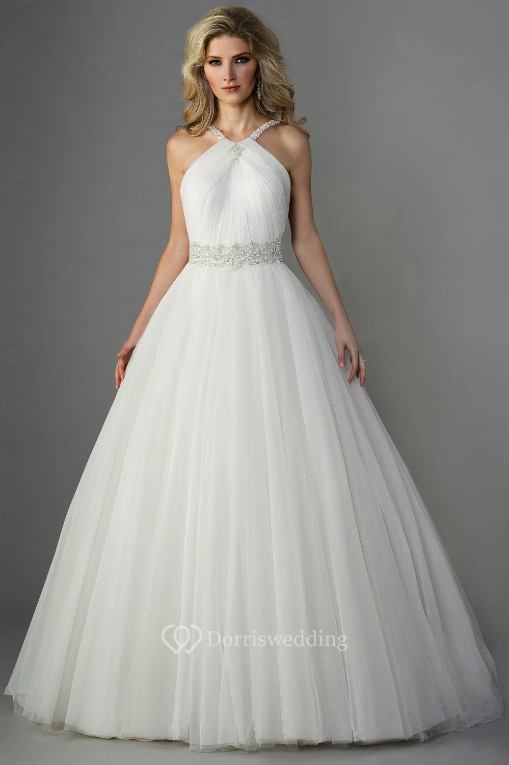 Halter A-Line Ballgown With Shining Beaded Waist And Ruches