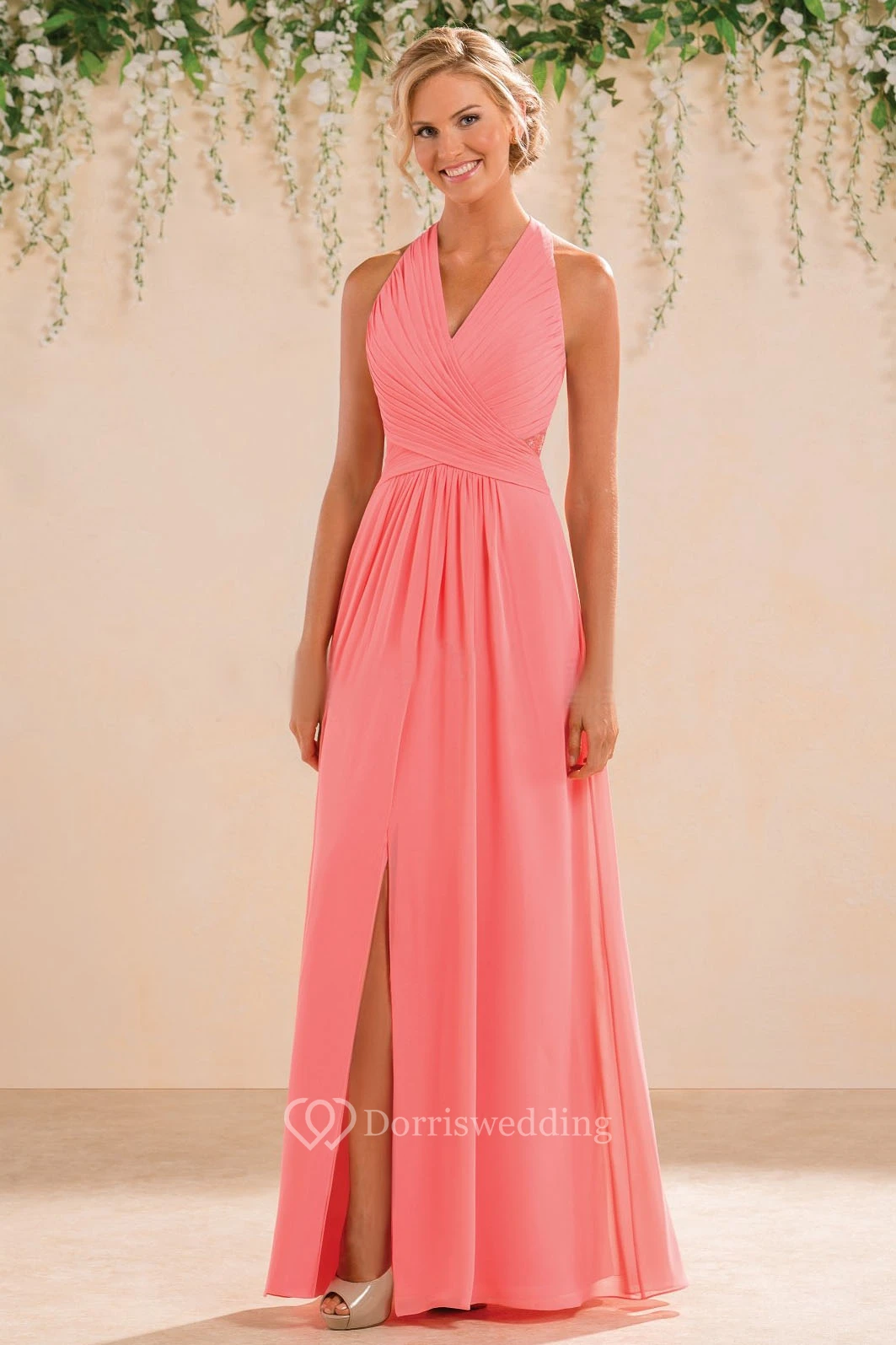 Halter A-Line Floor-Length Chiffon Bridesmaid Dress With Front Slit
