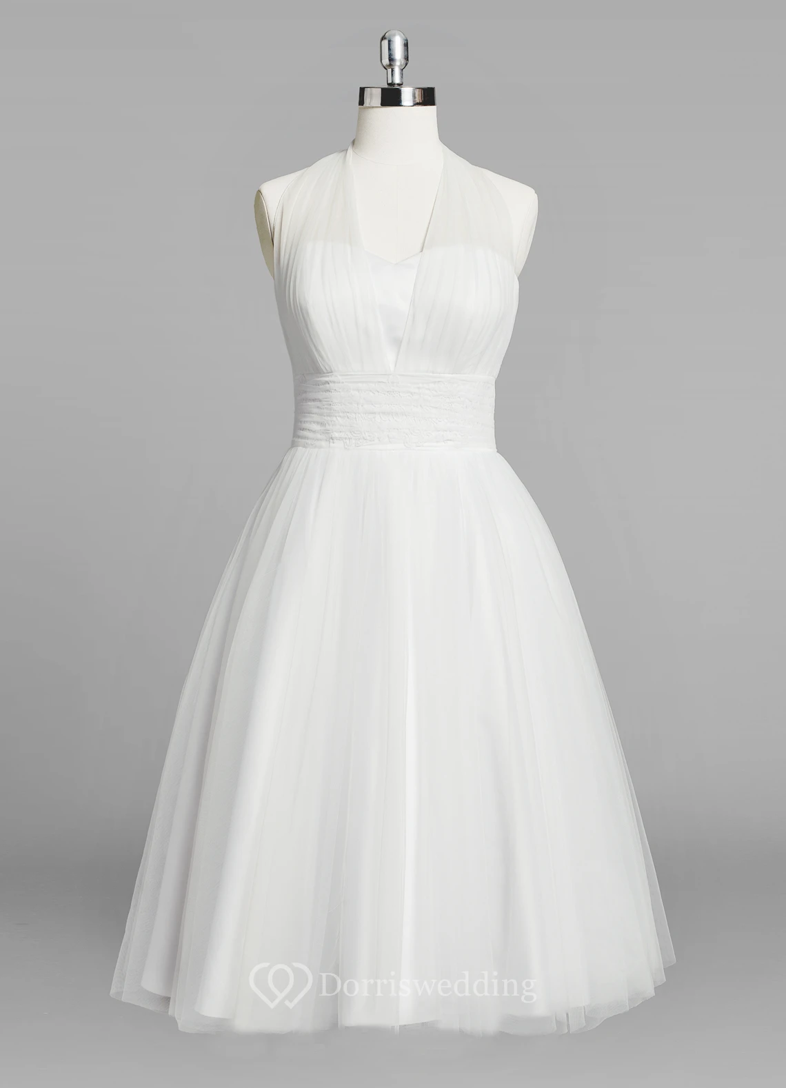 Halter A-Line Short Tulle Tea Length Wedding Dress With Ruching