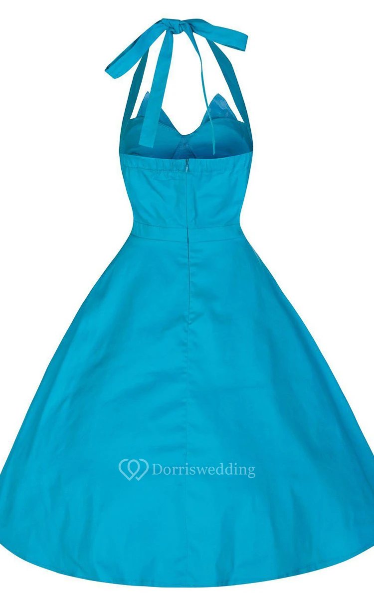 Halter A-line Tea-length Dress With Buttons
