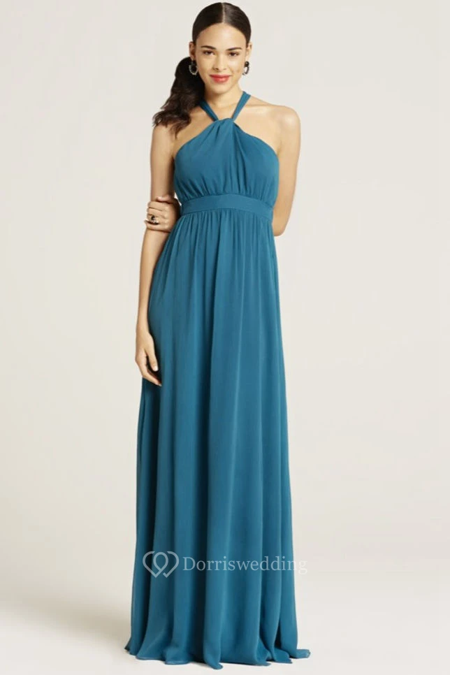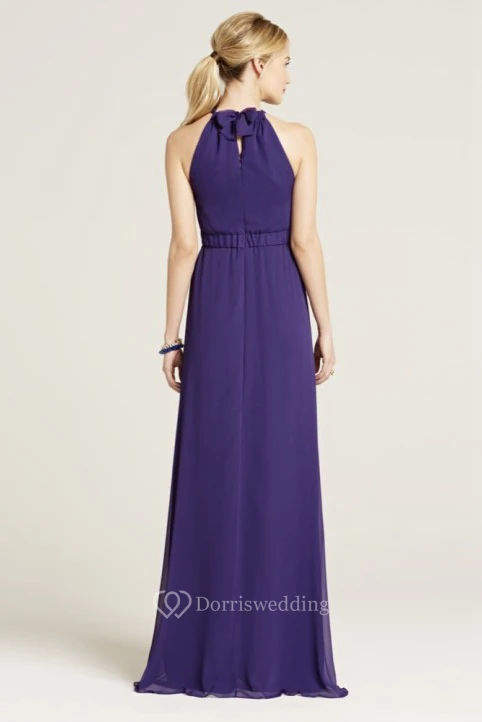 Halter Bowed Sleeveless Chiffon Bridesmaid Dress